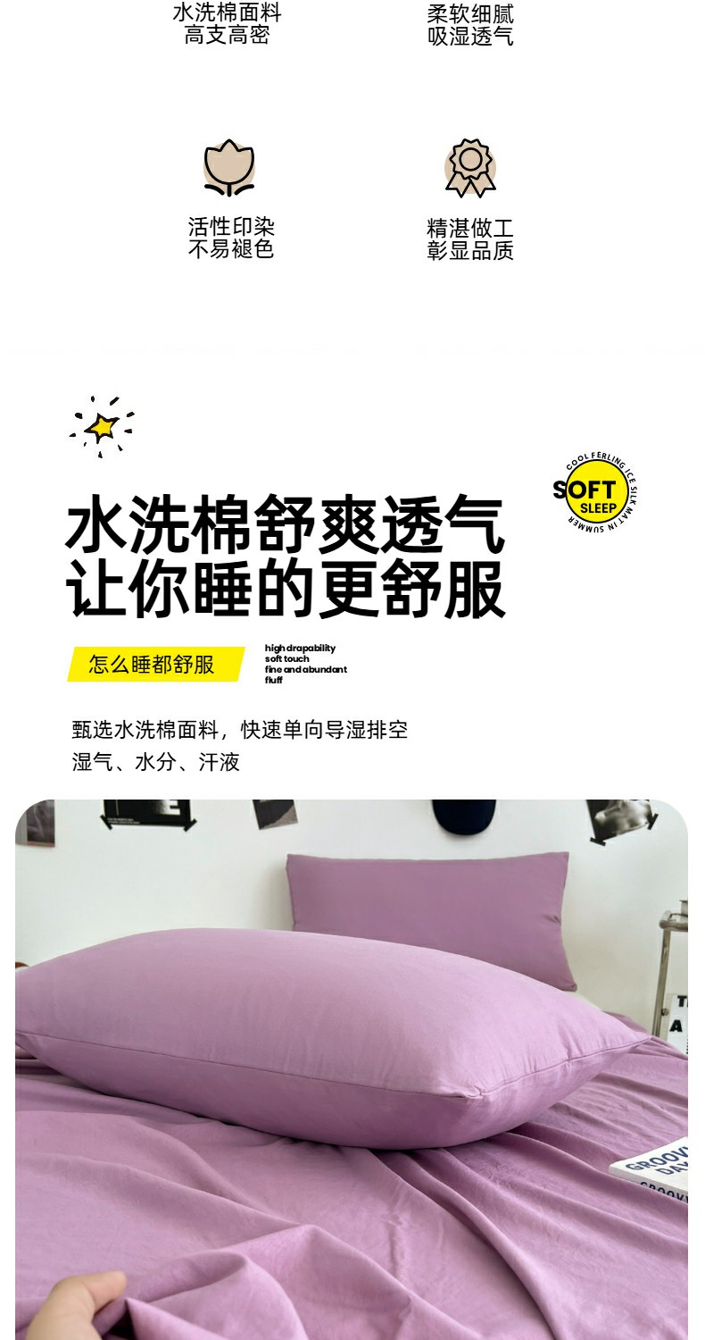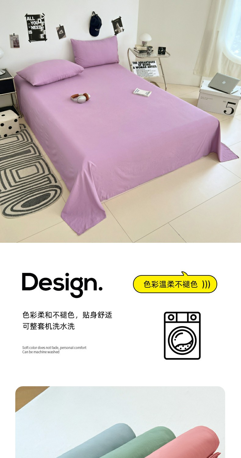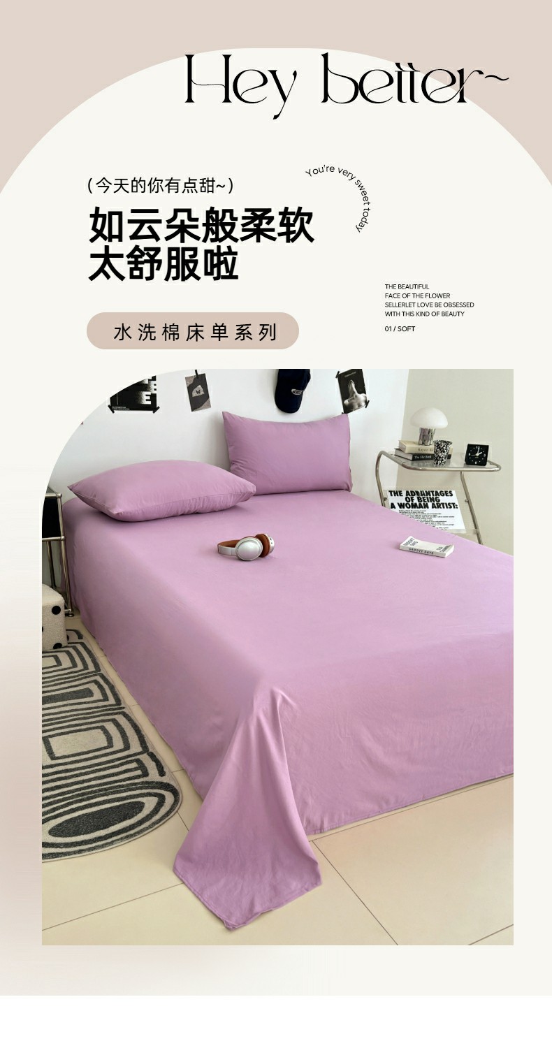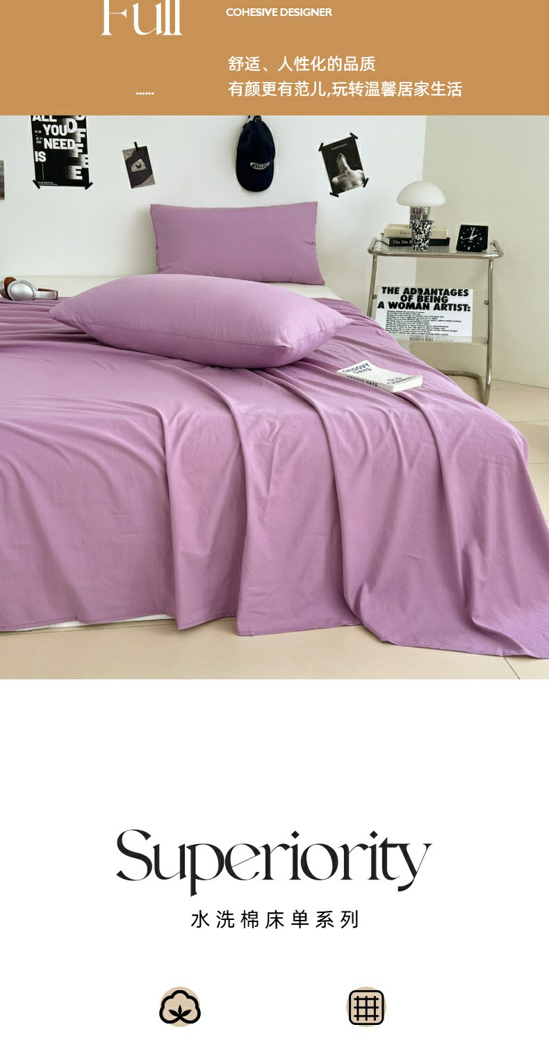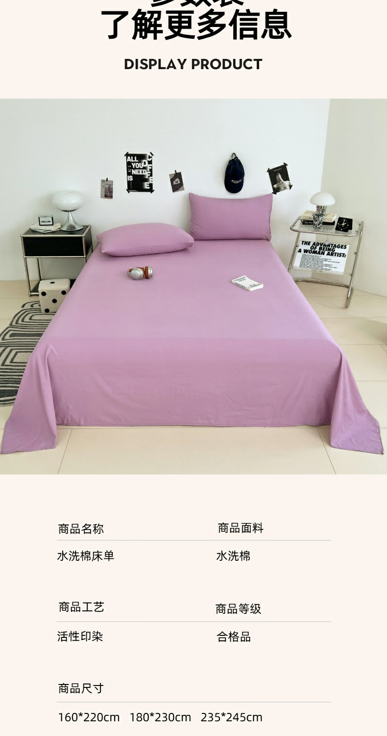 优佳优品 2025新款亲肤水洗棉纯色单品床单 帝王紫