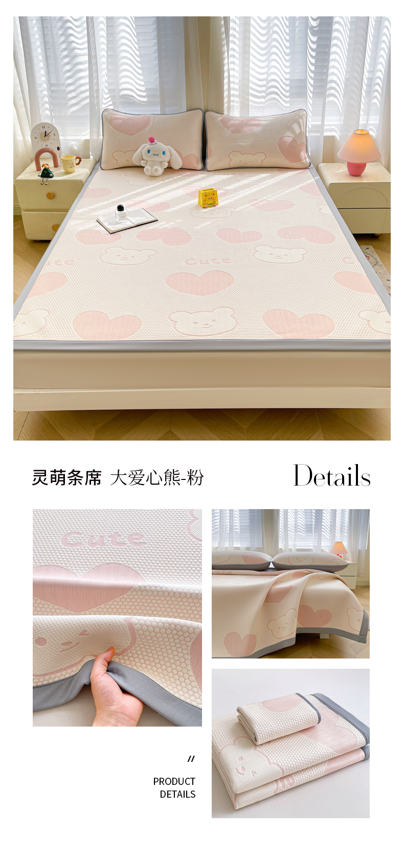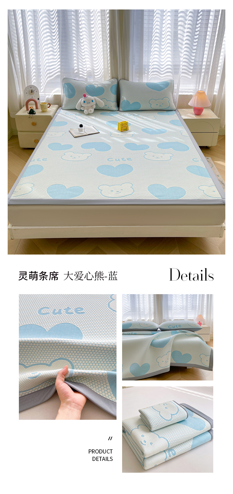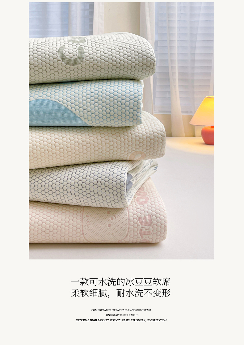 • 91家纺网 家纺一手货源 找家纺 小叮当家纺仓储工厂店 2025新款冰豆豆凉席冰丝席凉豆豆凉席-灵萌系列-床席款 灵萌条席-兔宝熊-绿