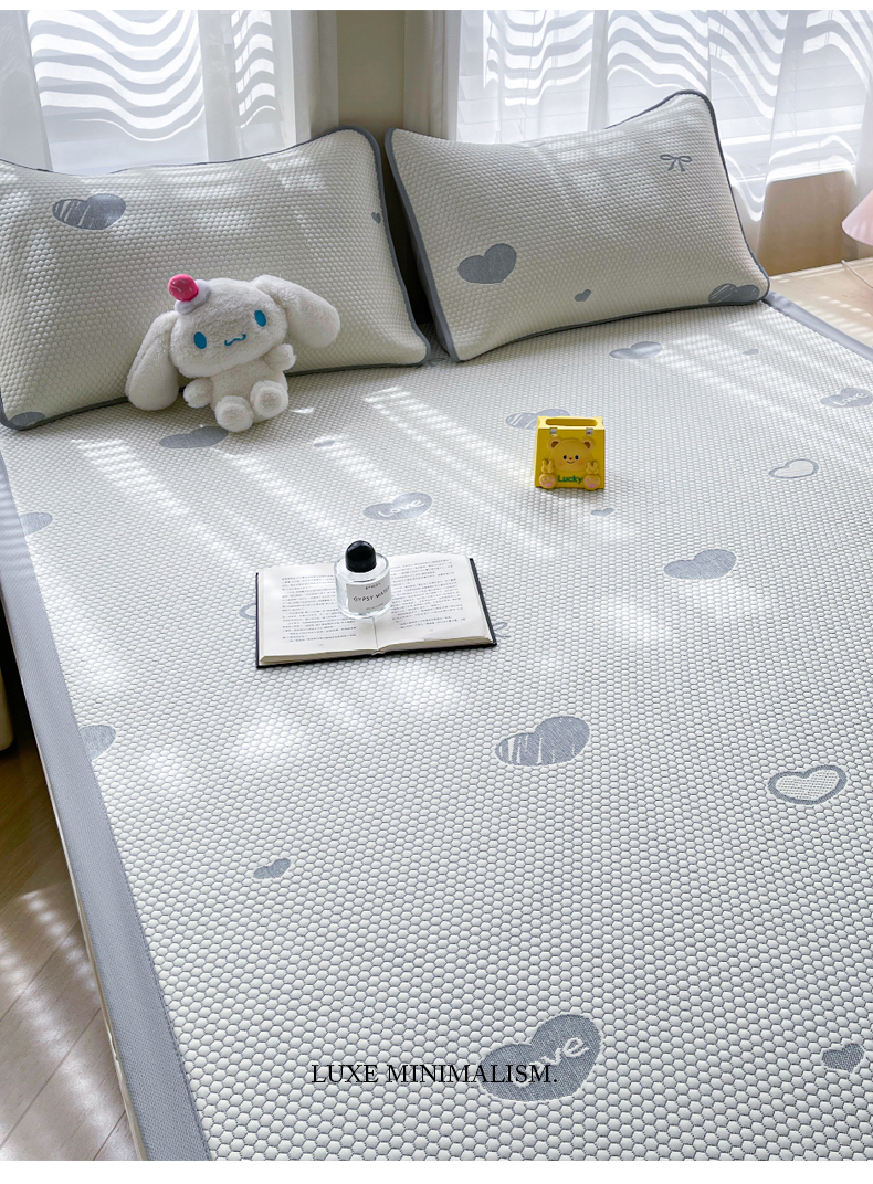 小叮当家纺仓储工厂店 2025新款冰豆豆凉席冰丝席凉豆豆凉席-灵萌系列-床席款 灵萌条席-兔宝熊-绿