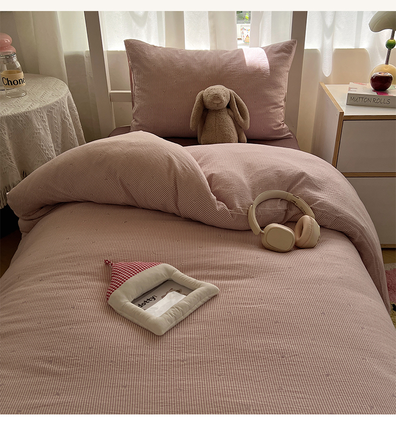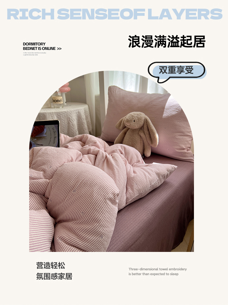 当前位置: 91家纺网 > 商品网购 > 床品套件 > 四件套 > 双层纱四件套 > 韩巢家纺 2025新款双层纱学生季床铺单件被套宿舍寝室上下铺三件套 紫倾心