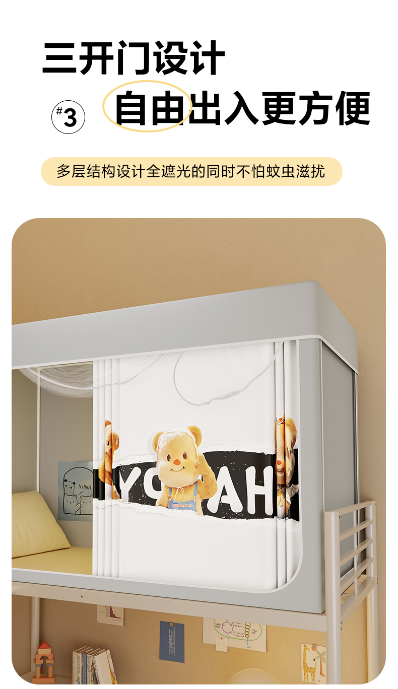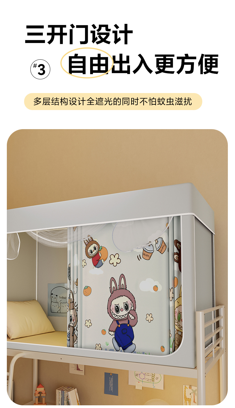 (总)安金蚊帐2025新款防蚊遮光一体99%强遮光学生宿舍上下铺遮光学生蚊帐-灰色系列,多彩布布,搞怪小新,奇奇一家,探险布布,窜窜鼠,拍拍熊