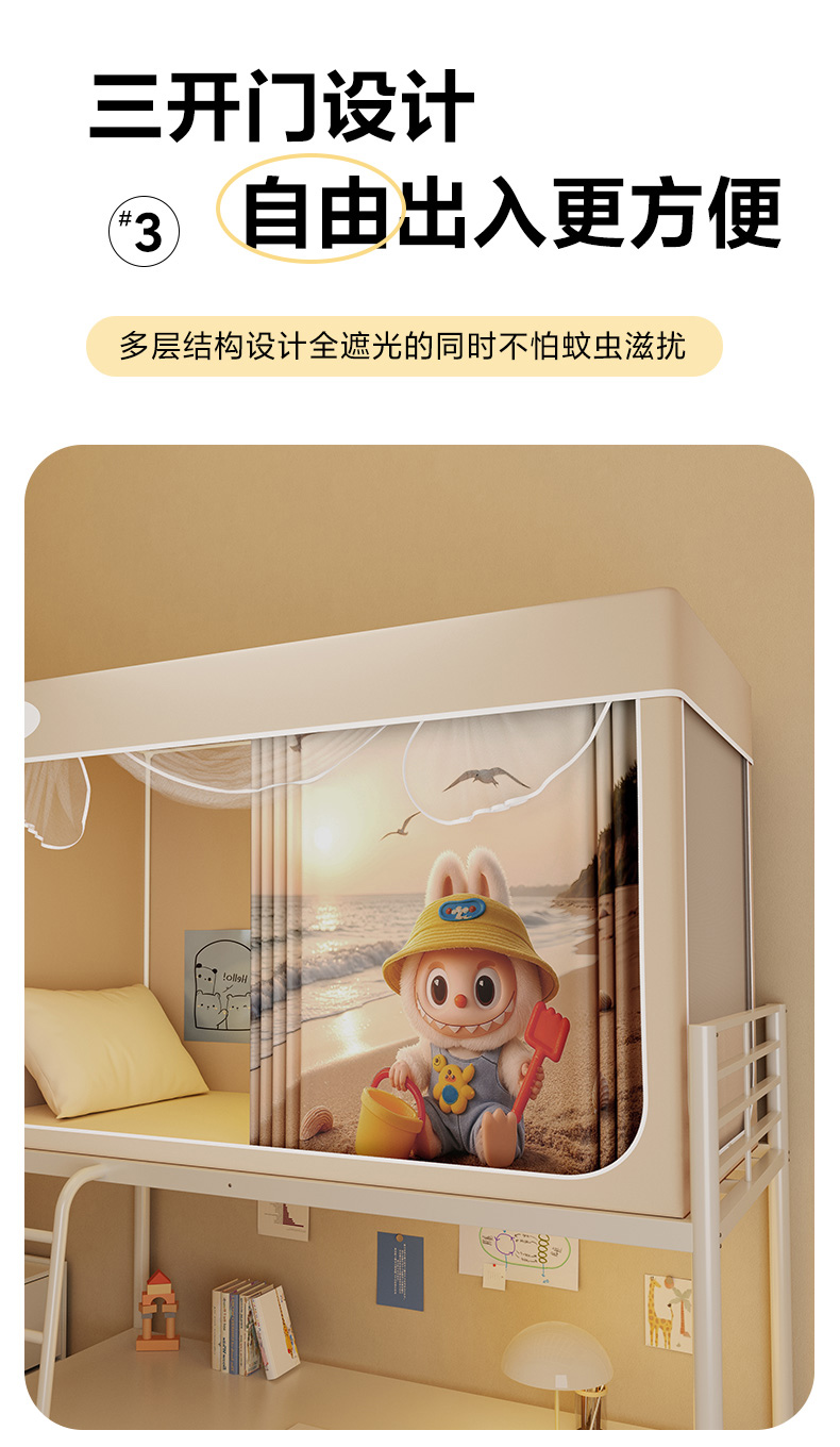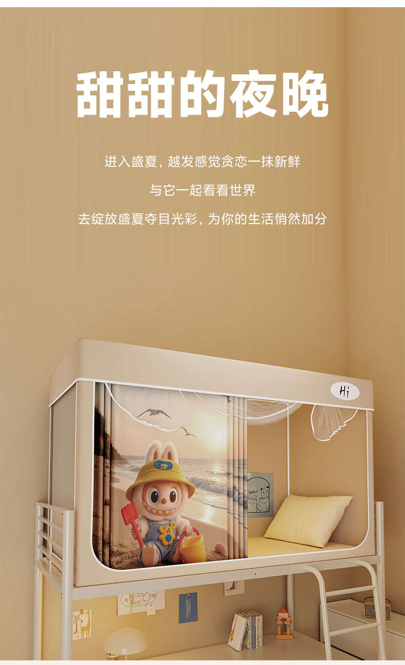 当前位置: 91家纺网 > 商品网购 > 床上用品 > 蚊帐 > 学生蚊帐 > 安金蚊帐2025新款防蚊遮光一体99%强遮光学生宿舍上下铺遮光学生蚊帐-卡其系列 沙滩布布
