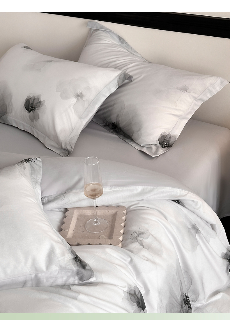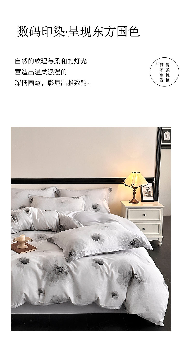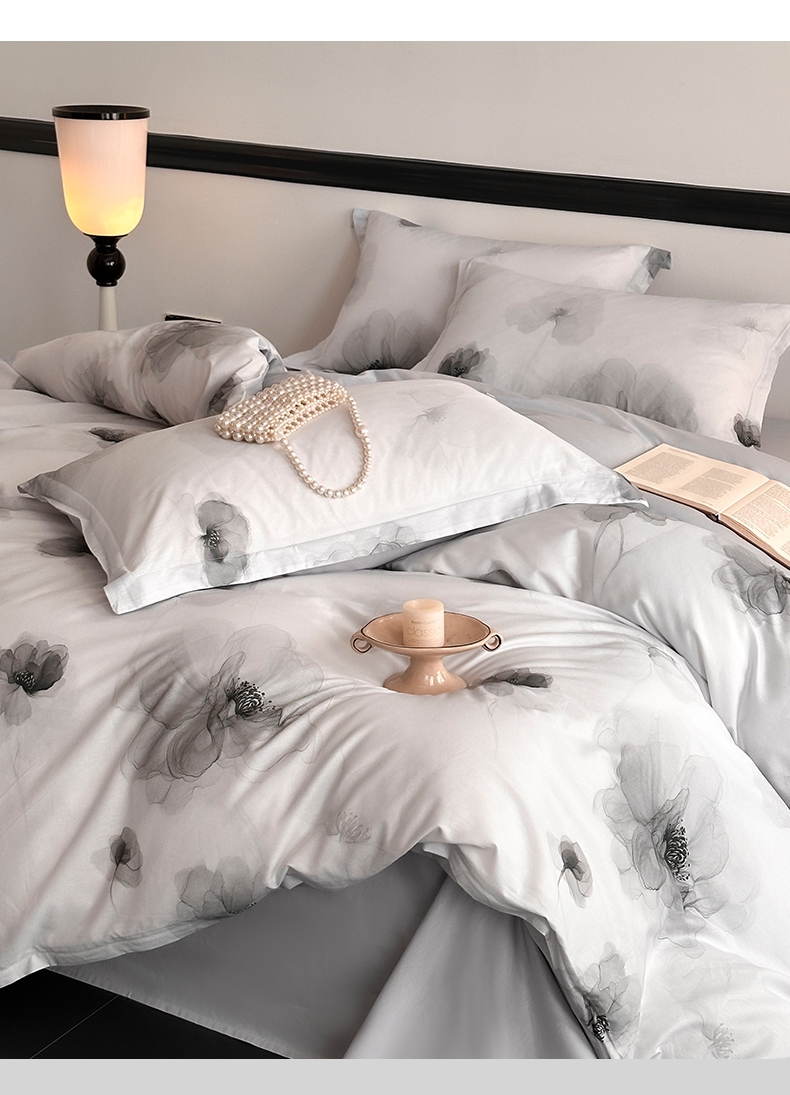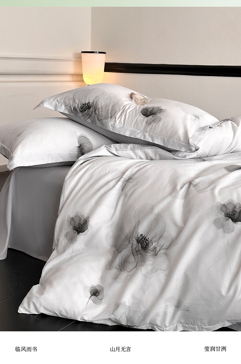 当前位置: 91家纺网 > 商品网购 > 床品套件 > 四件套 > 全棉普通四件套 > 金鑫汇家纺 2025新款13372全棉纯棉高端数码印花四件套 春晓-灰