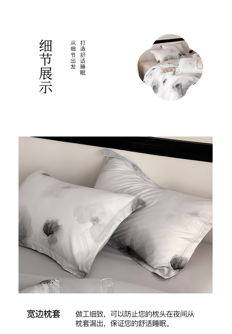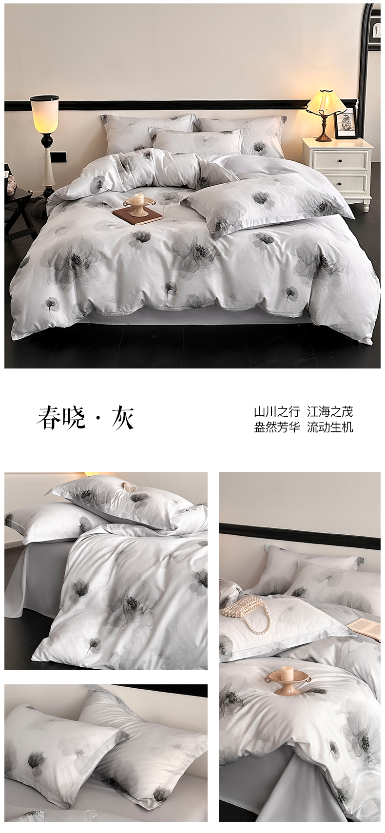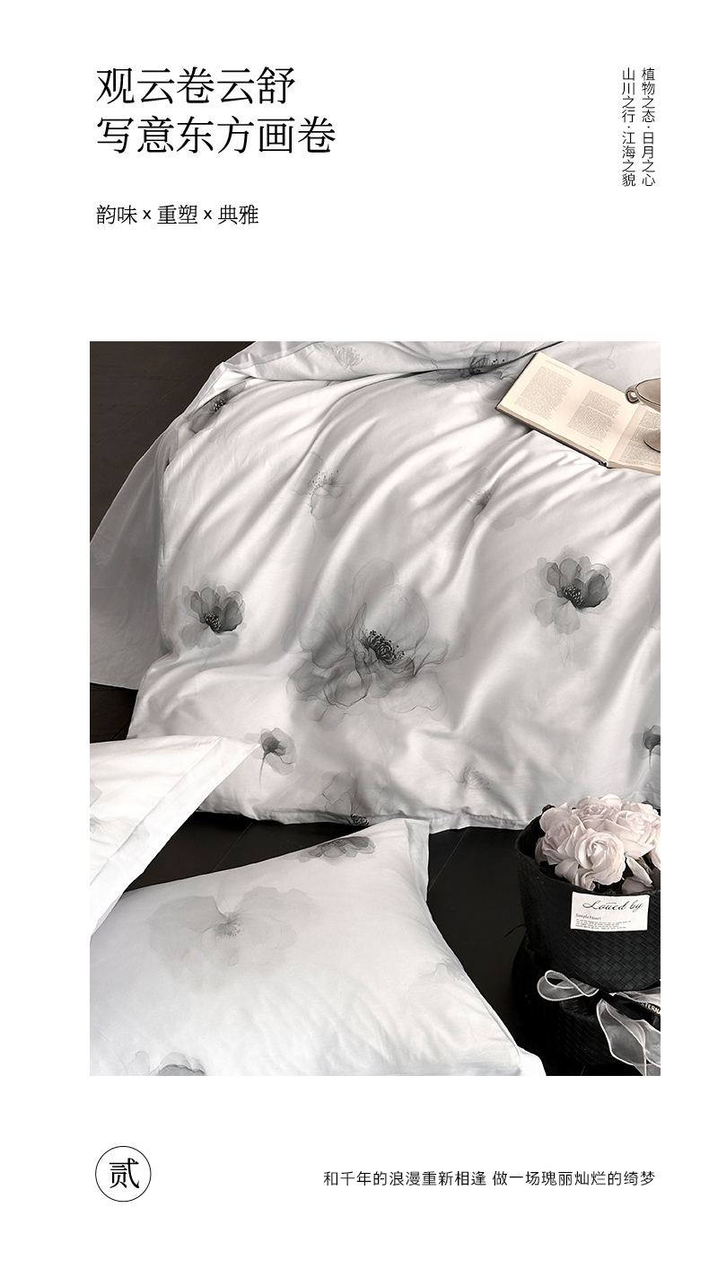 当前位置: 91家纺网 > 商品网购 > 床品套件 > 四件套 > 全棉普通四件套 > 金鑫汇家纺 2025新款13372全棉纯棉高端数码印花四件套 春晓-灰