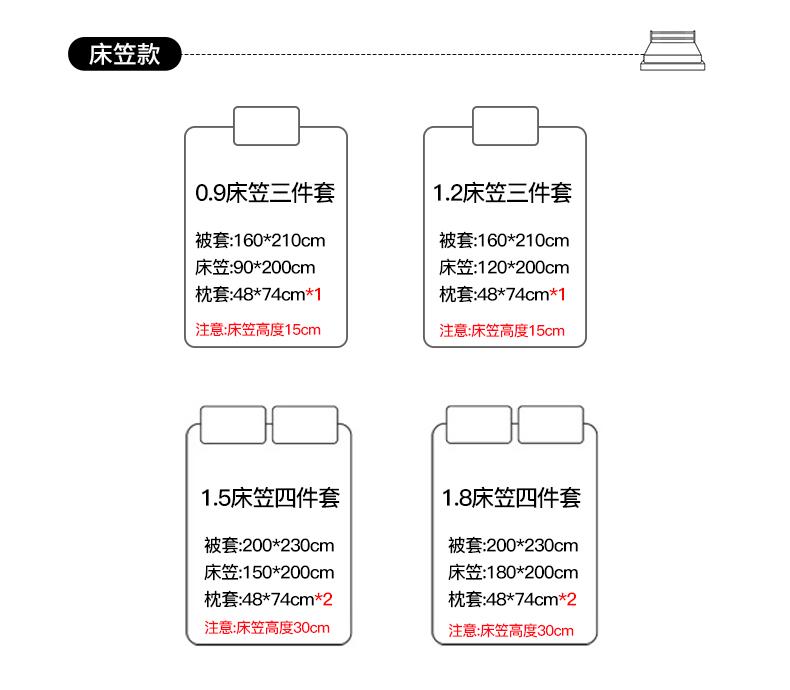 【床笠款】0.9三件套-被套160x210 | ¥100.00 |