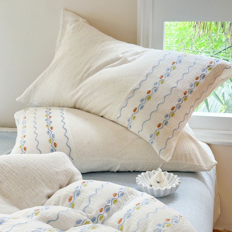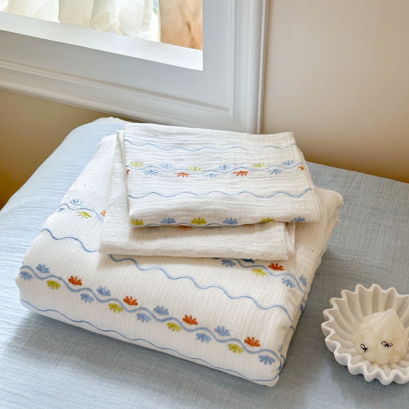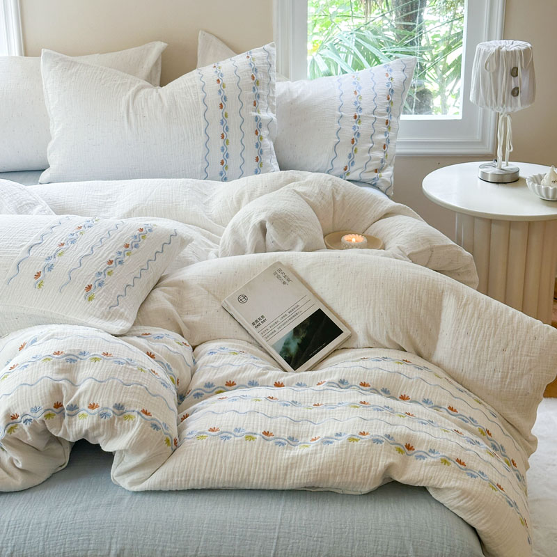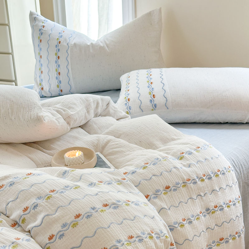 (总)木楌家居2025新款全棉彩点皱皱纱绣花四件套,暗香初醒,星柠微糖,樱草日记,织梦星河