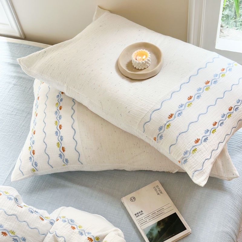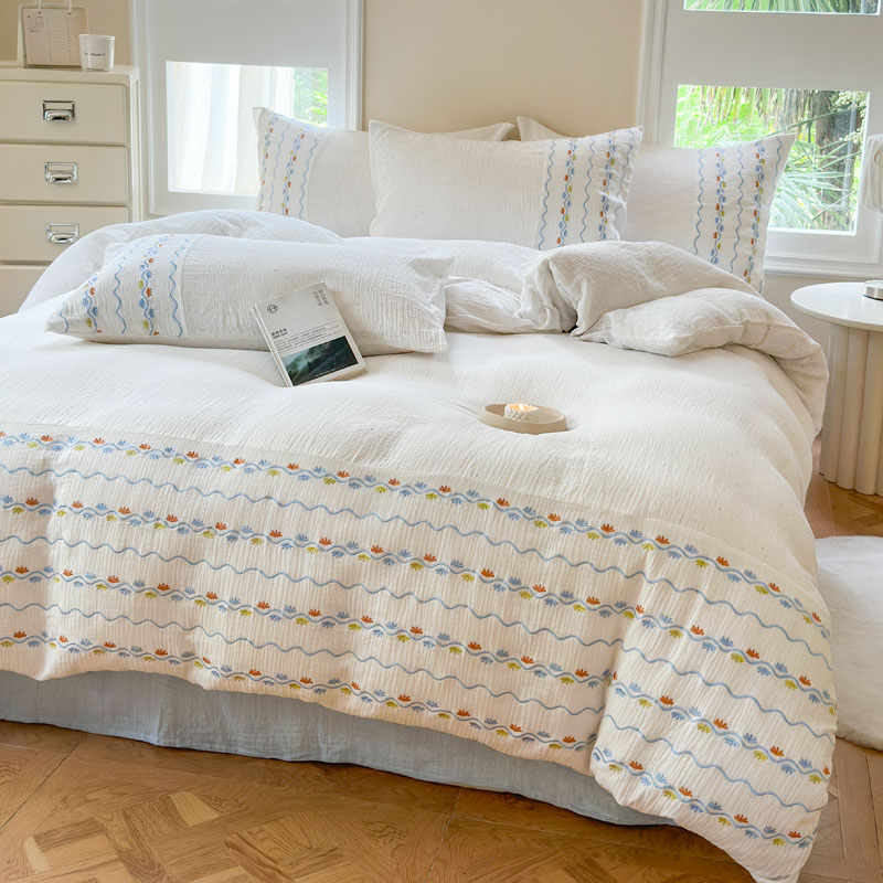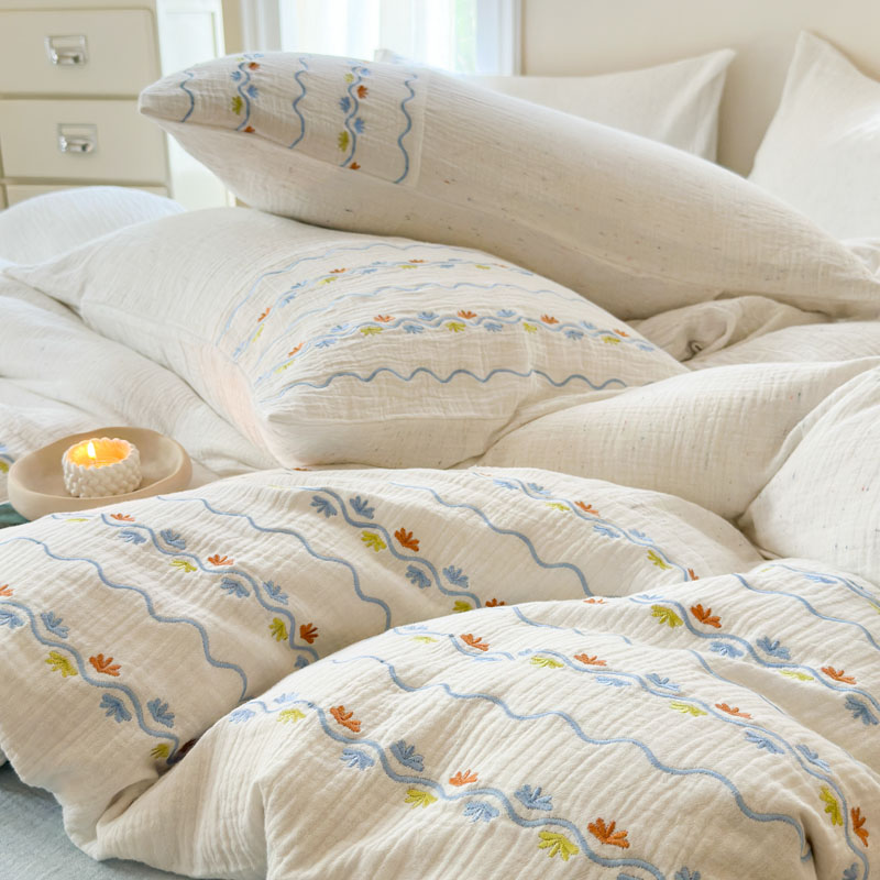 木楌家居2025新款全棉彩点皱皱纱绣花四件套 织梦星河