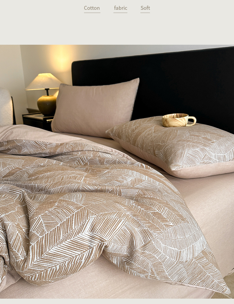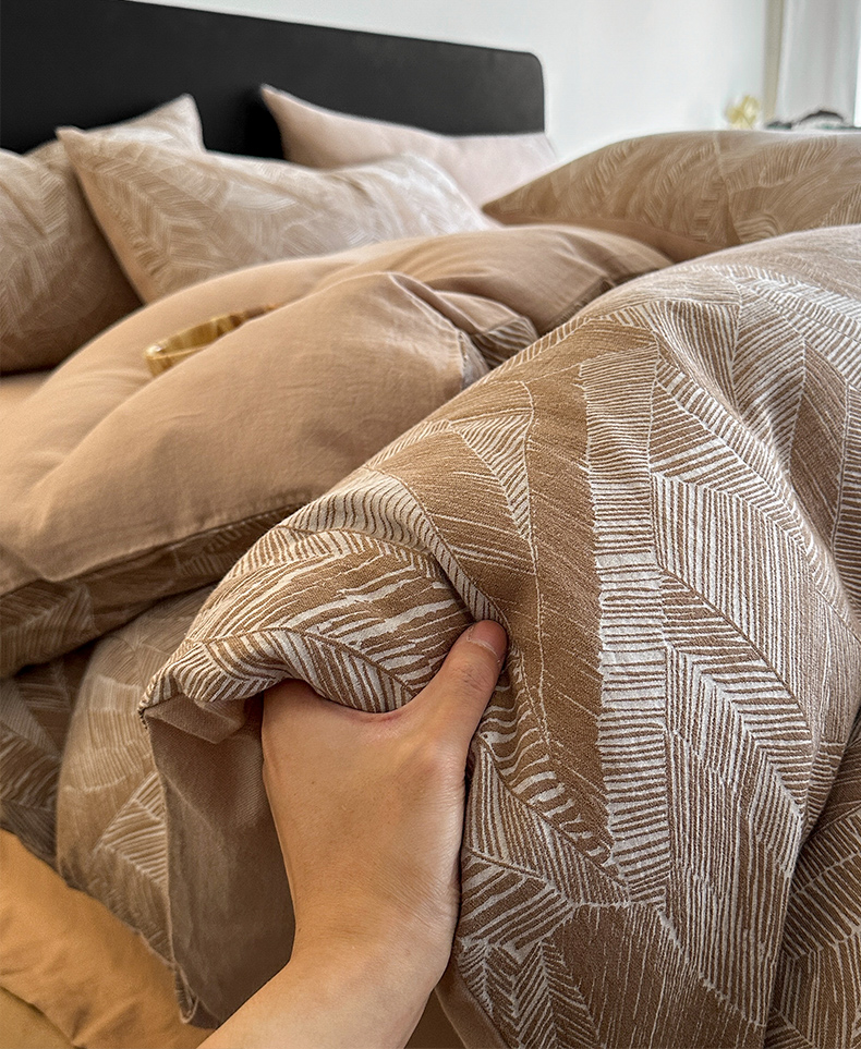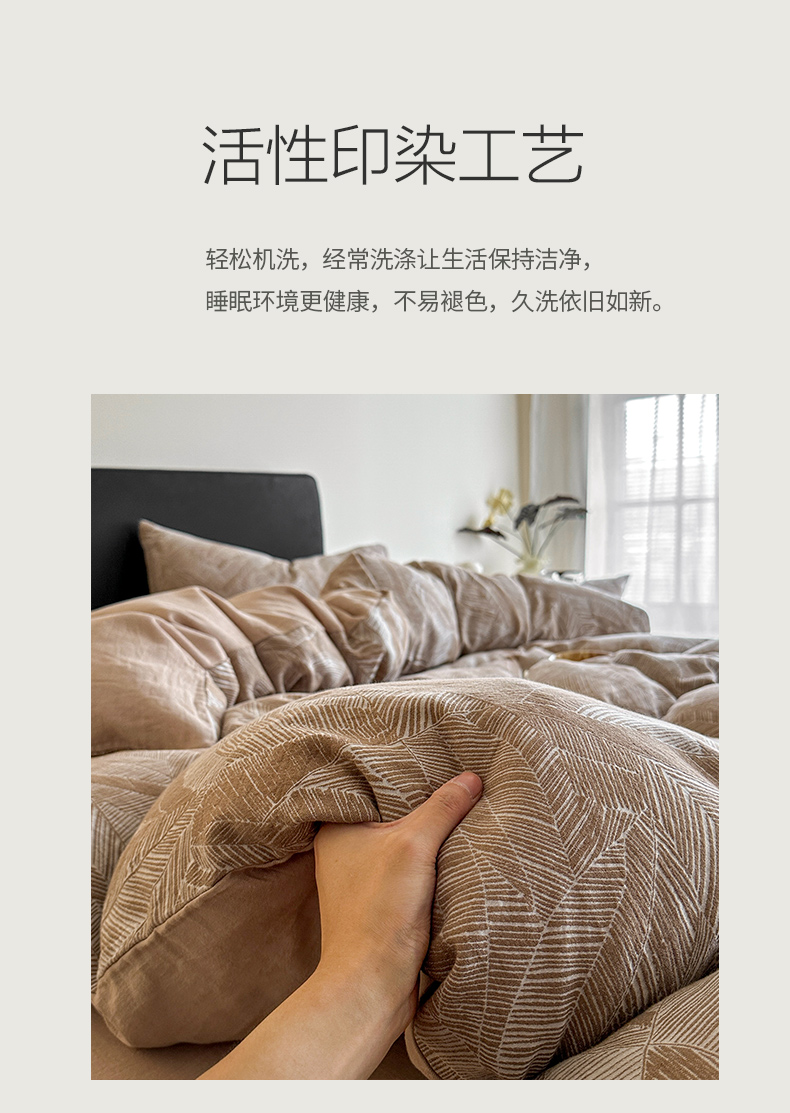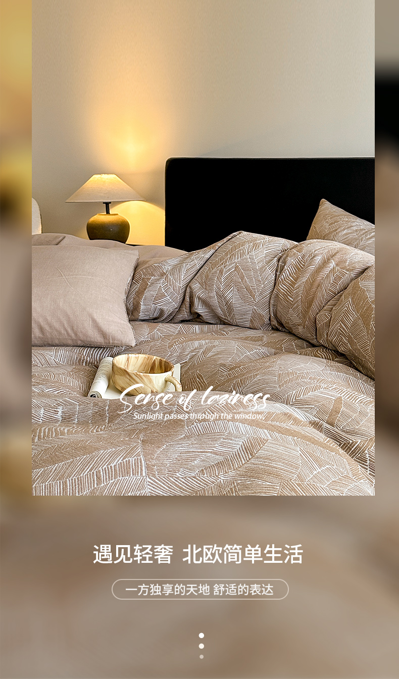 当前位置: 91家纺网 > 商品网购 > 床品套件 > 四件套 > 全棉普通四件套 > ab家纺 2025新款全棉纯棉提花四件套-款式一 简影-浅咖