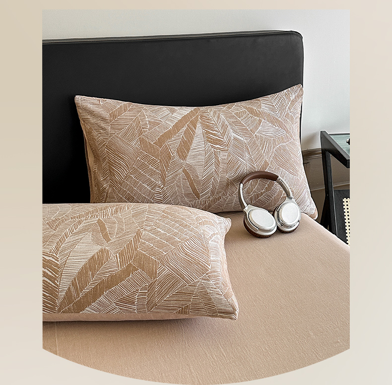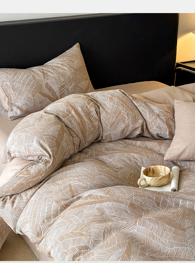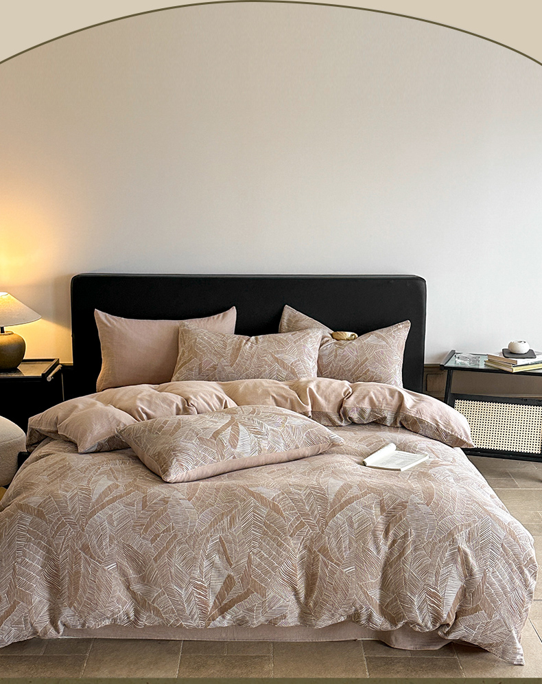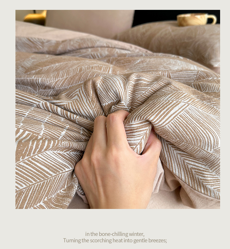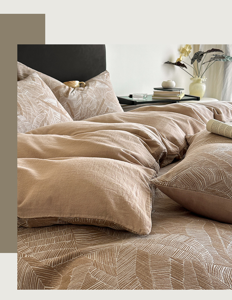 当前位置: 91家纺网 > 商品网购 > 床品套件 > 四件套 > 全棉普通四件套 > ab家纺 2025新款全棉纯棉提花四件套-款式一 简影-浅咖