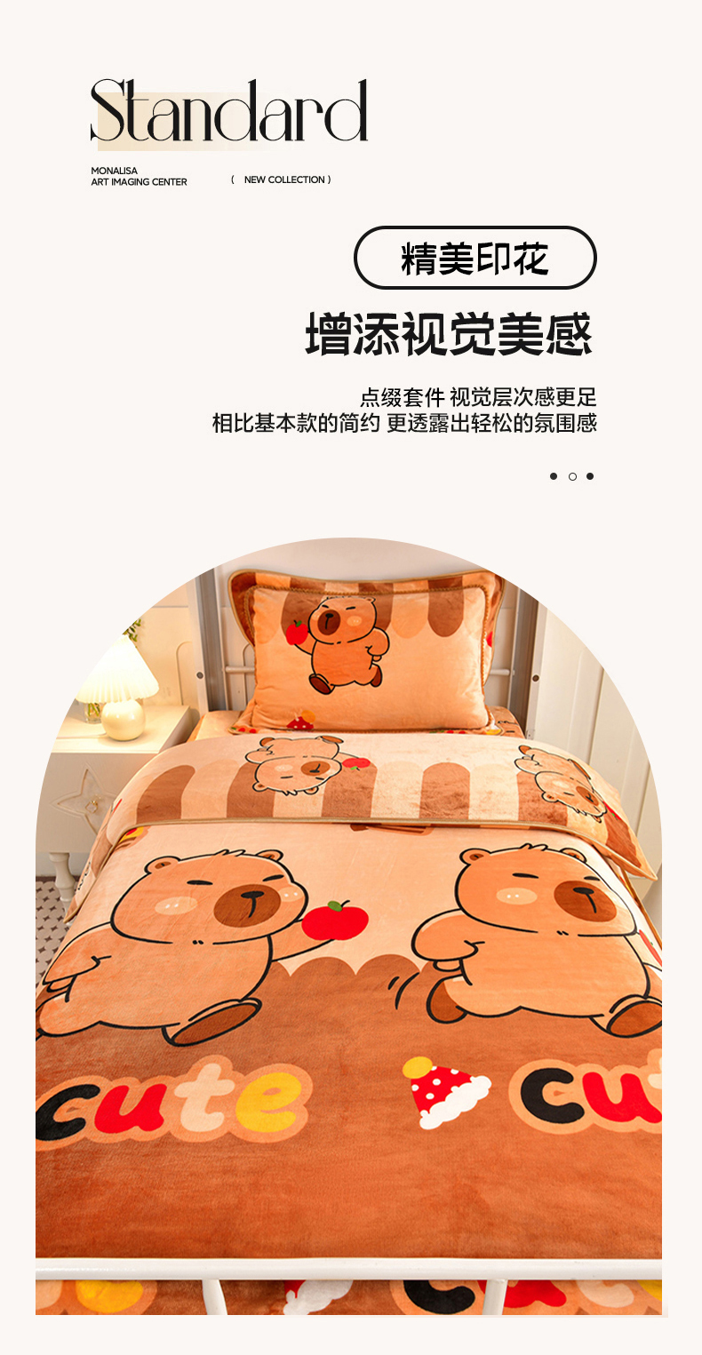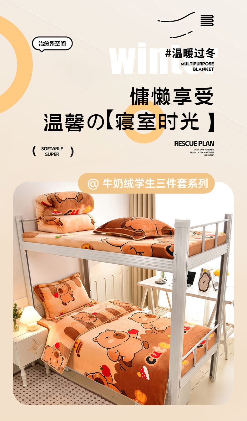 硕喜 2025新款学生宿舍床系列牛奶绒学生三件套 卡皮巴拉