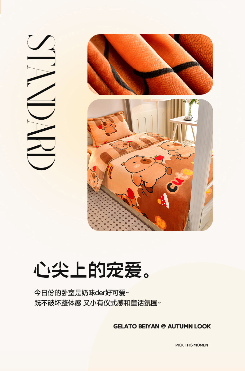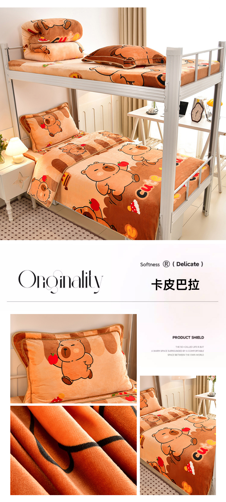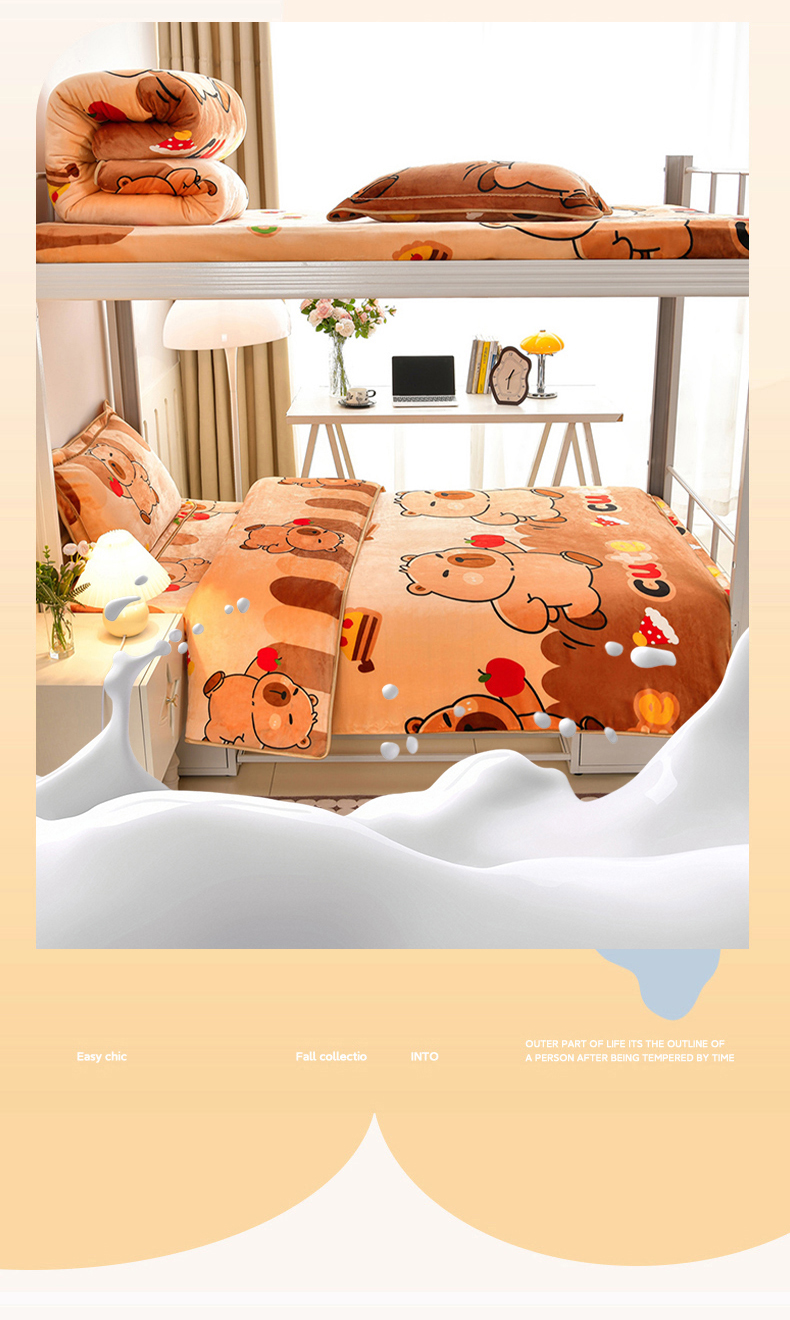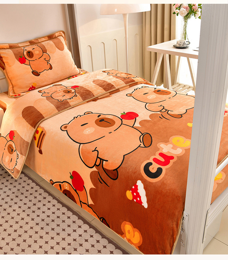 商品名称:硕喜 2025新款学生宿舍床系列牛奶绒学生三件套 卡皮巴拉