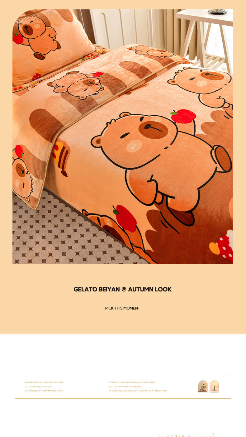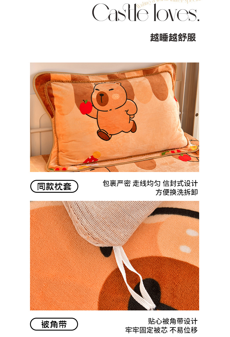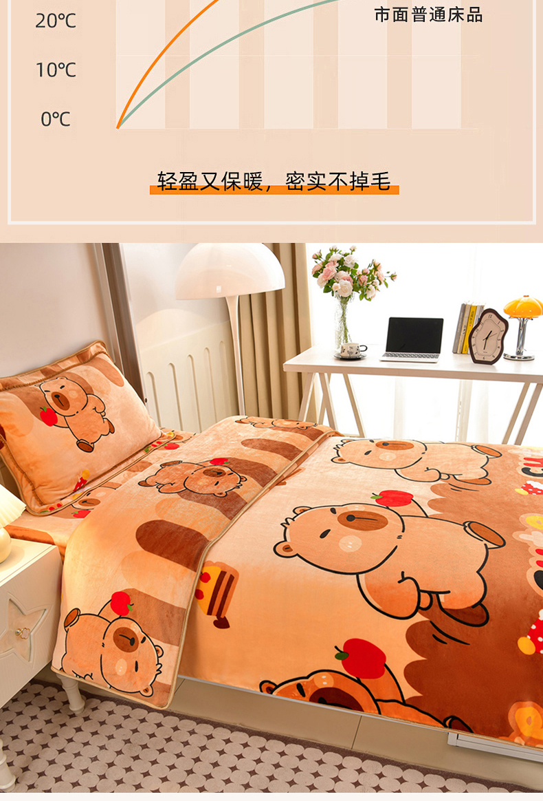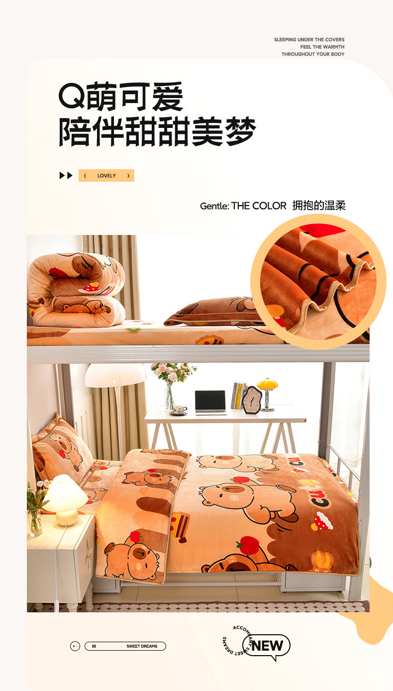 商品名称:硕喜 2025新款学生宿舍床系列牛奶绒学生三件套 卡皮巴拉