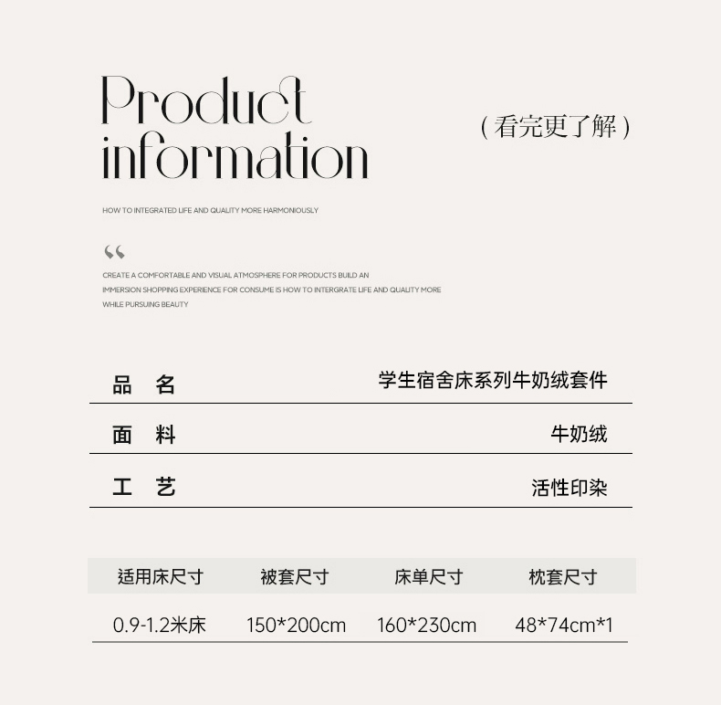 1.2床三件套【被套150*200,床单160*230,枕套一只48*74*1】