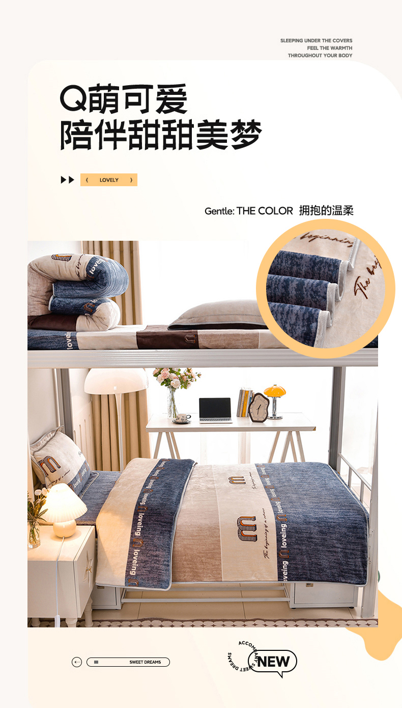商品名称:硕喜 2025新款学生宿舍床系列牛奶绒学生三件套 条纹密码