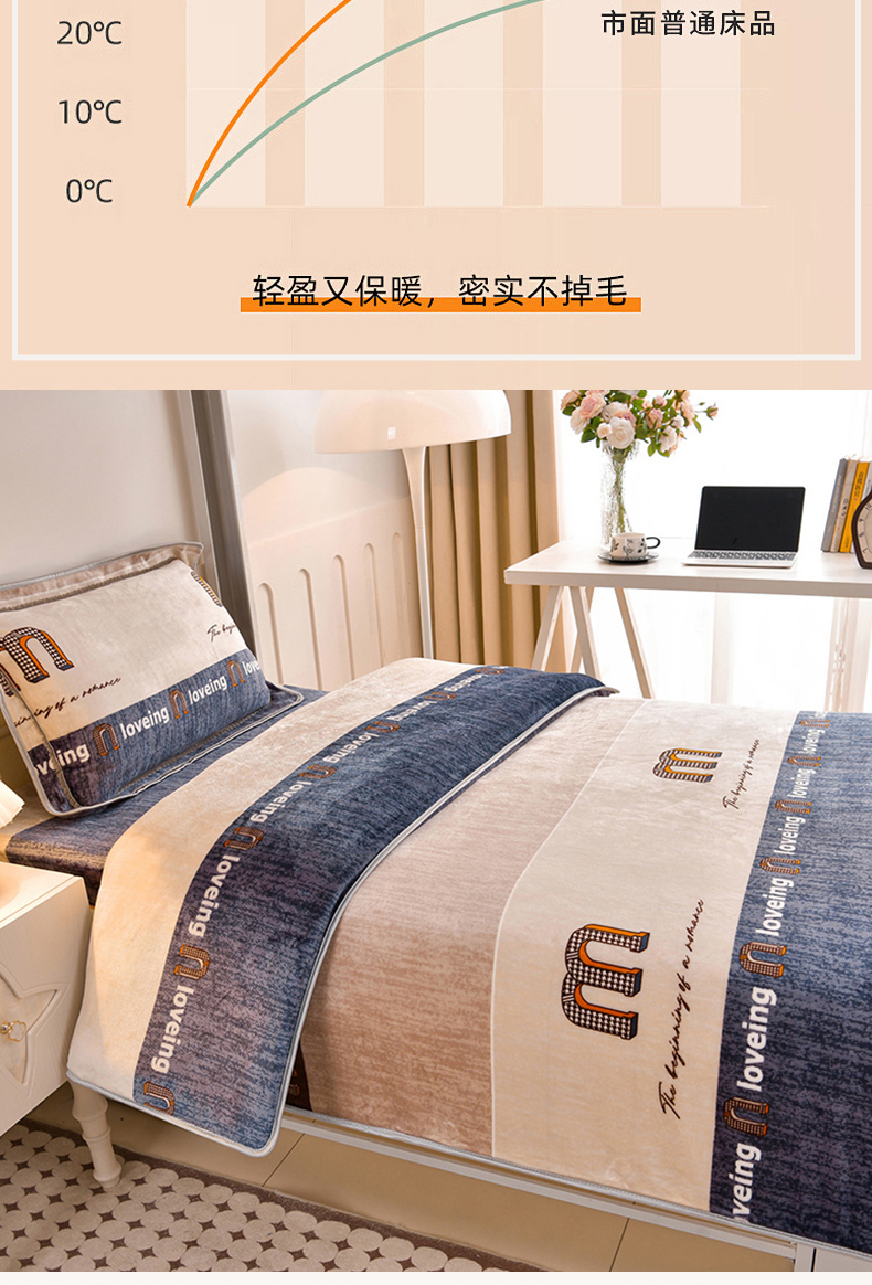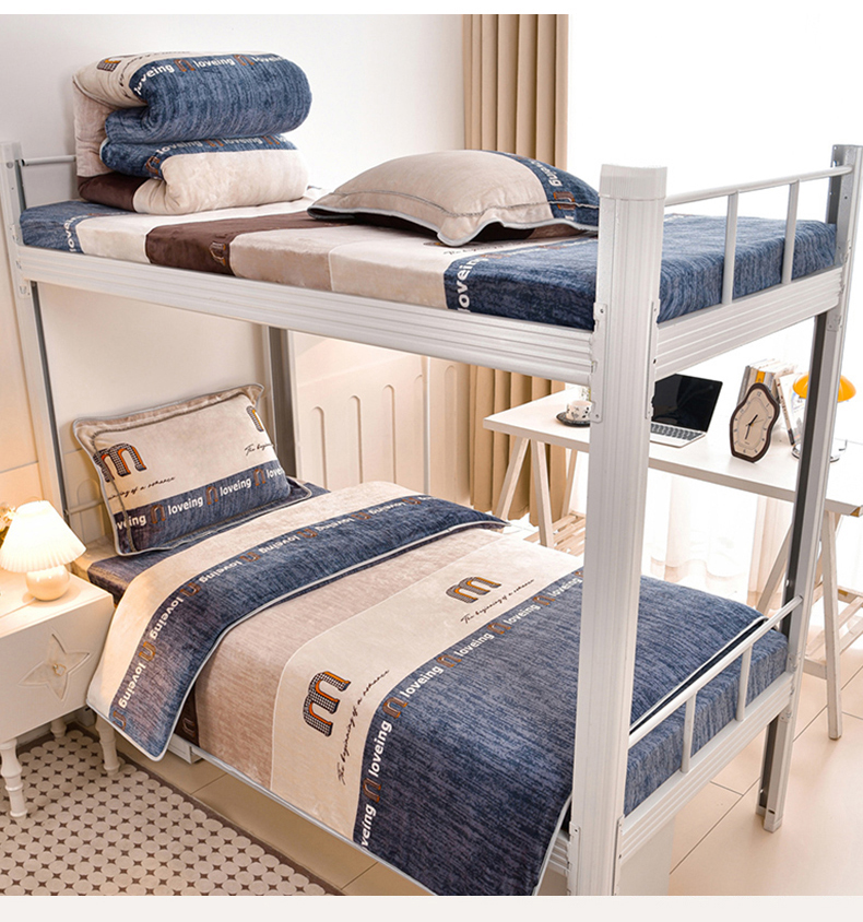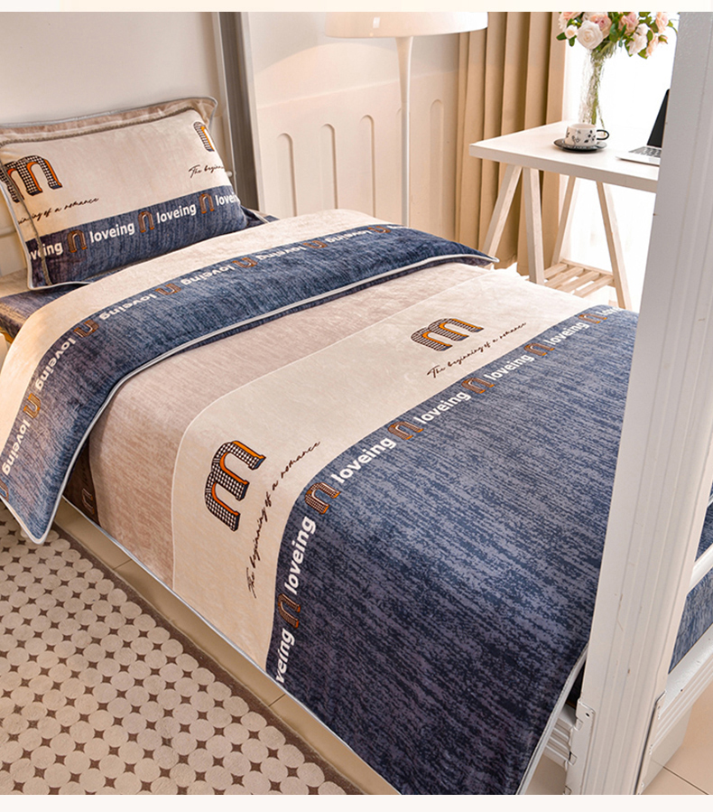 硕喜 2025新款学生宿舍床系列牛奶绒学生三件套 条纹密码