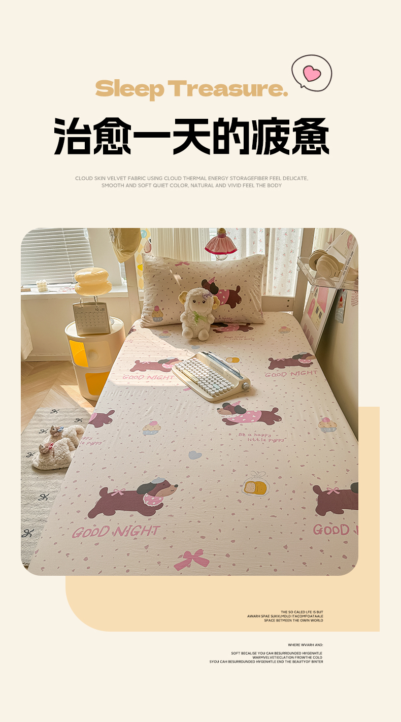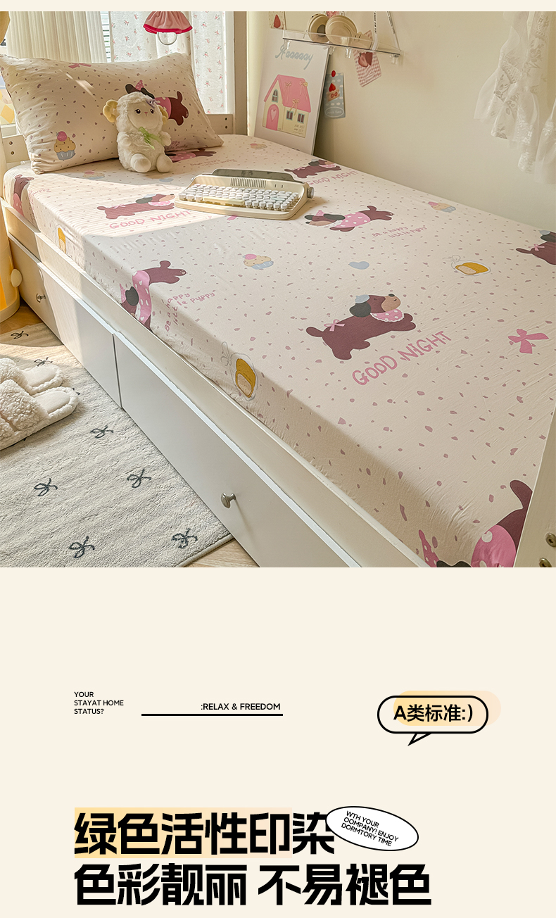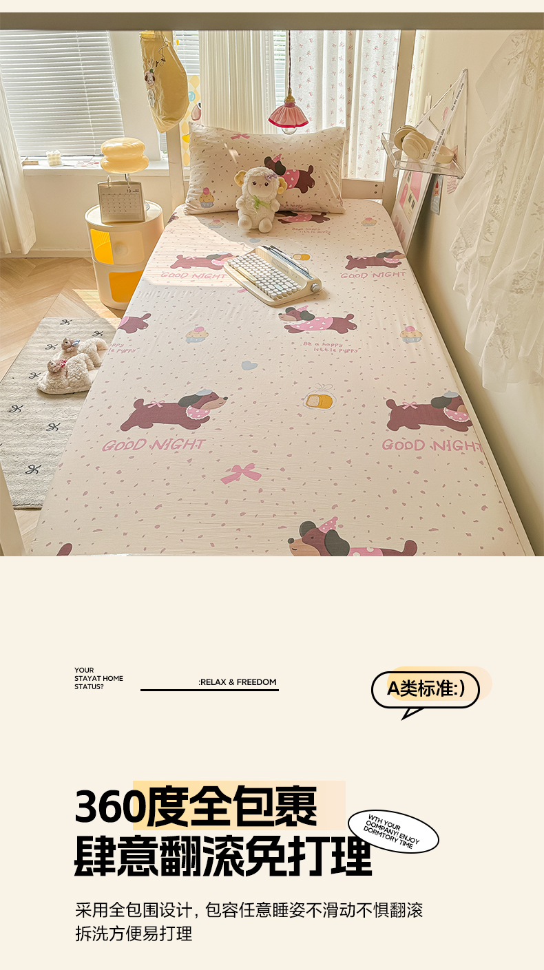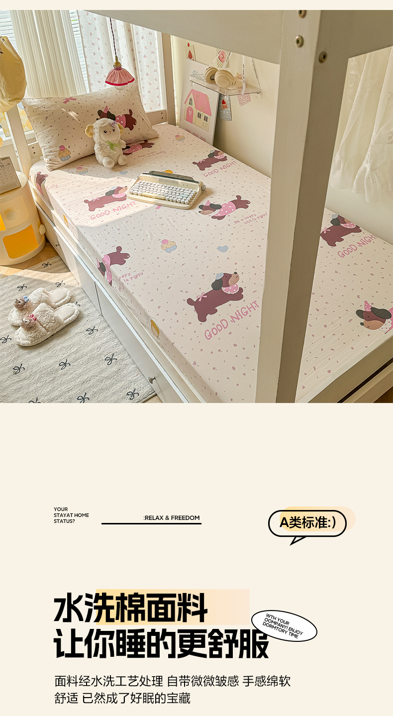 • 91家纺网 家纺一手货源 找家纺 韩巢家纺 2025新款上下铺学生宿舍专用床笠单件寝室高低床热销款防滑床单床套 彩彩狗