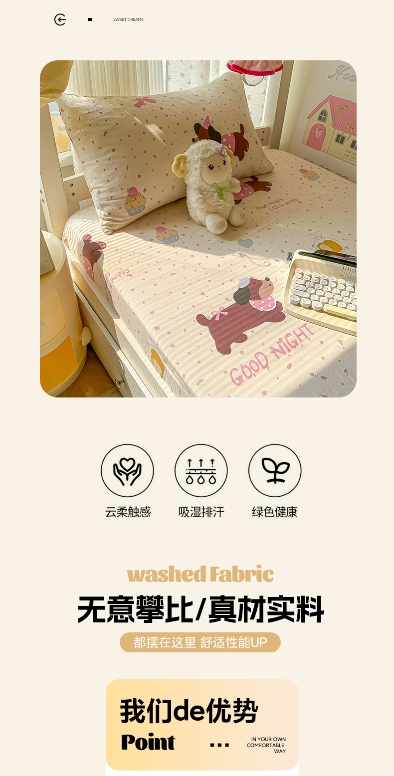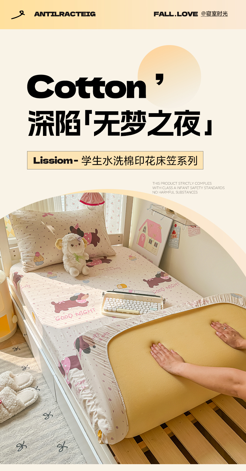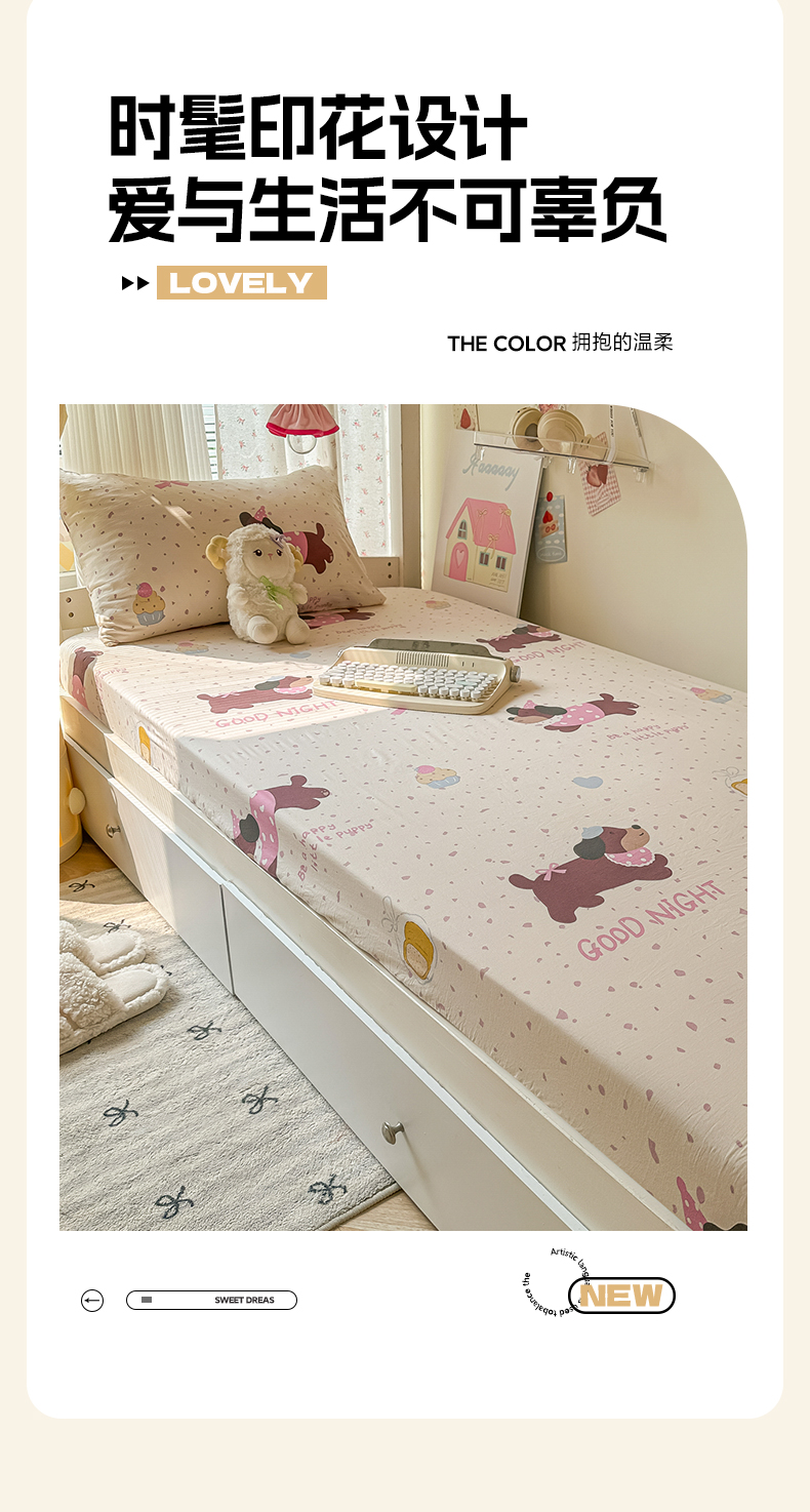 • 91家纺网 家纺一手货源 找家纺 韩巢家纺 2025新款上下铺学生宿舍专用床笠单件寝室高低床热销款防滑床单床套 彩彩狗