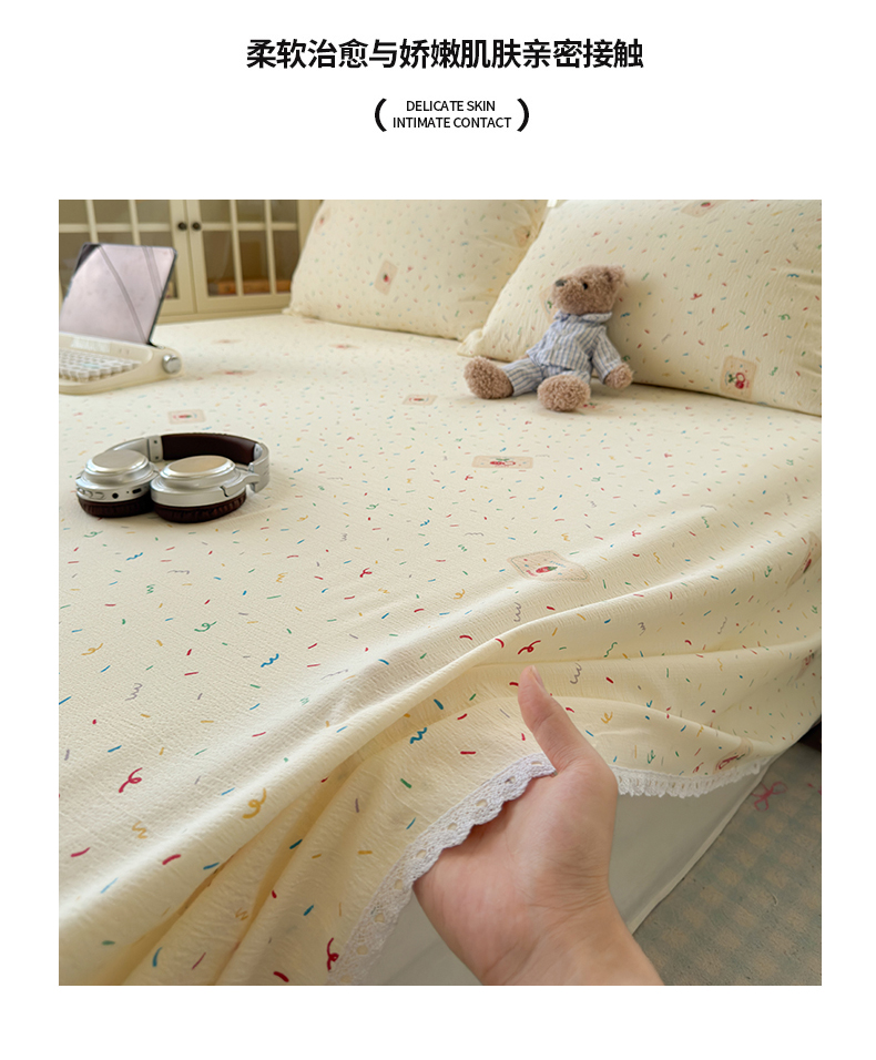 当前位置: 91家纺网 > 商品网购 > 床上用品 > 床单 > 沐芷 2025 A类双层纱花边床单单件 单人双人床单三件套 草莓糖霜