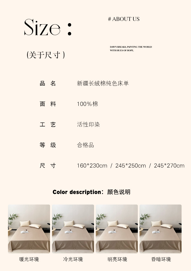 (总)云栖家居 2023A类长绒棉纯色单床单,黑加仑,鲸鱼蓝,落日橙,落叶黄,棉花糖色,莫兰迪粉,青灰色,赛琳绿,天空灰,威尼斯蓝