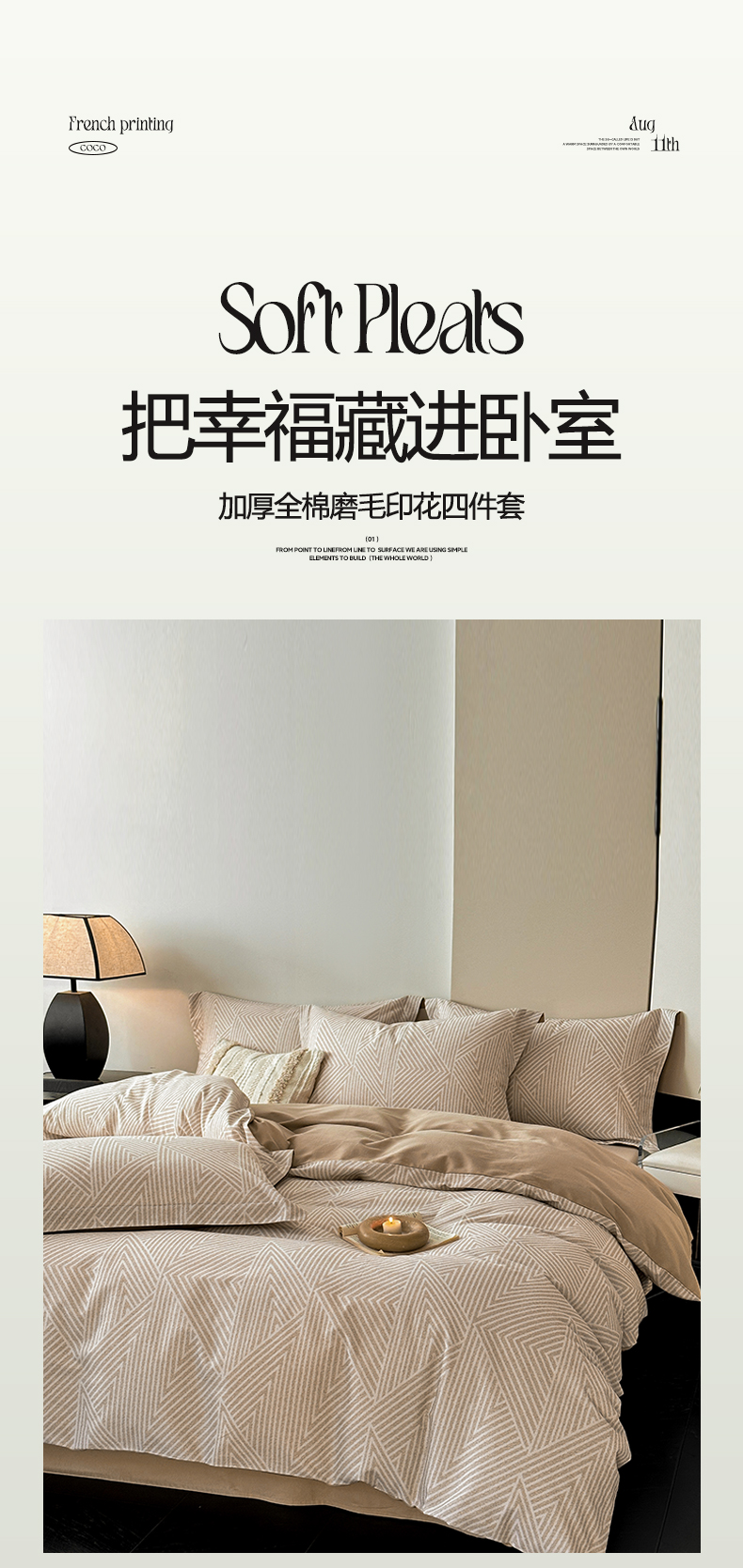 当前位置: 91家纺网 > 商品网购 > 床品套件 > 四件套 > 磨毛活性四件套 > 涵宸家纺 2025新款加厚全棉磨毛印花四件套--罗马系列 场景一 D卢卡斯