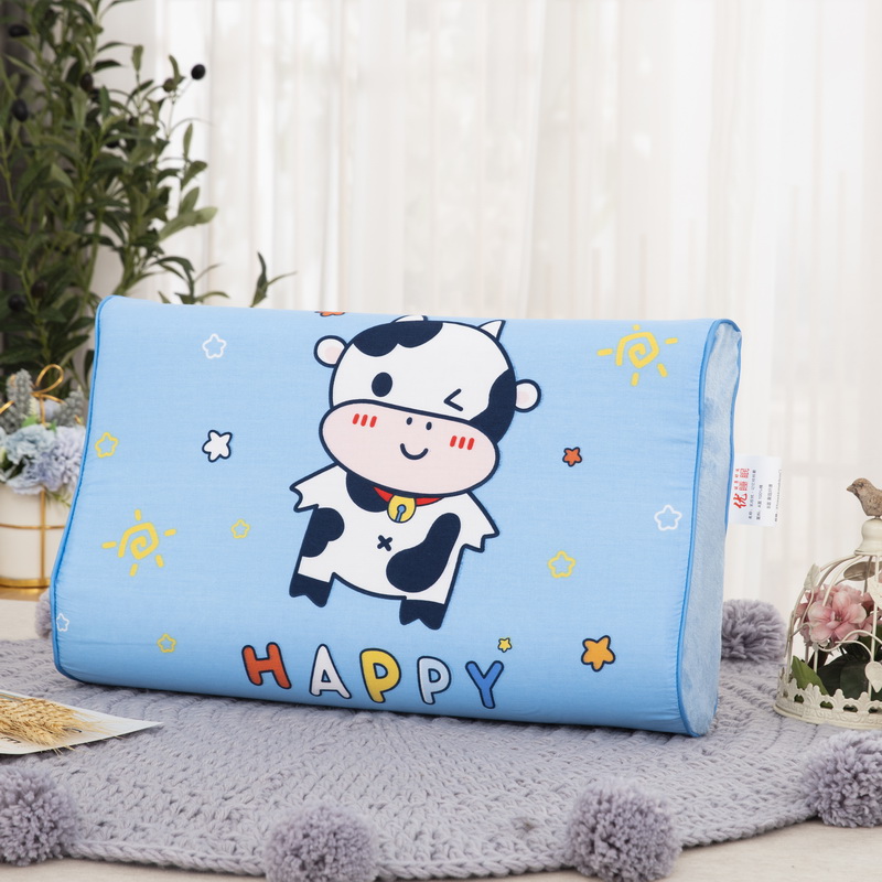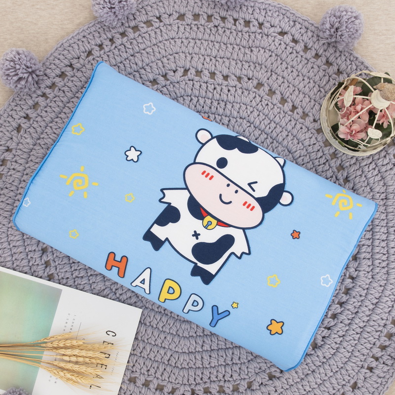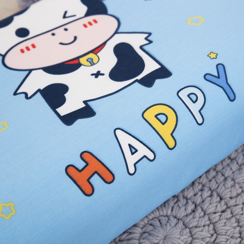商品名称:大黄蜂家居家纺 2025新款全棉13372棉儿童卡通乳胶枕套 快乐牛牛蓝