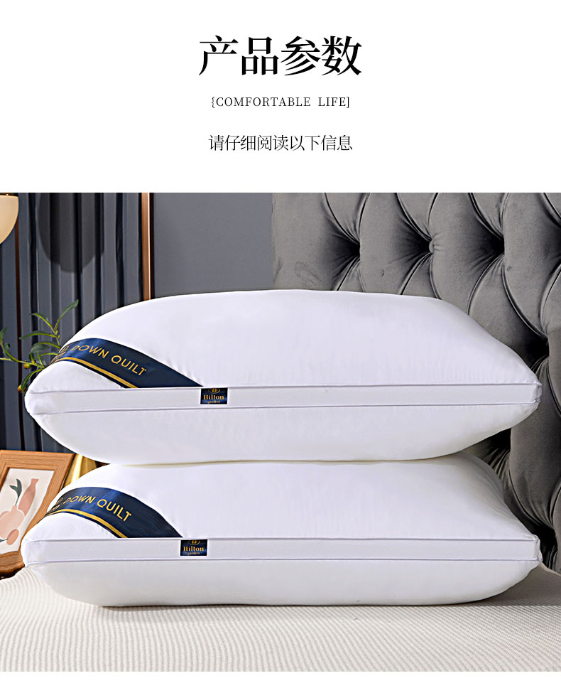 商品名称:永乐枕芯 2025新款引流热款酒店单双边羽丝绒枕头枕芯(尺寸和重量均可定制) 立体白色