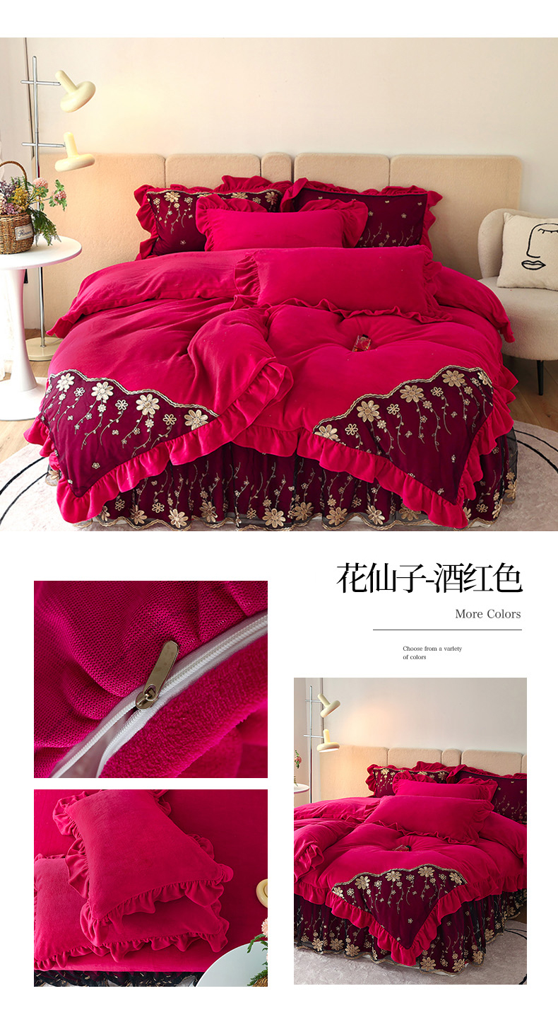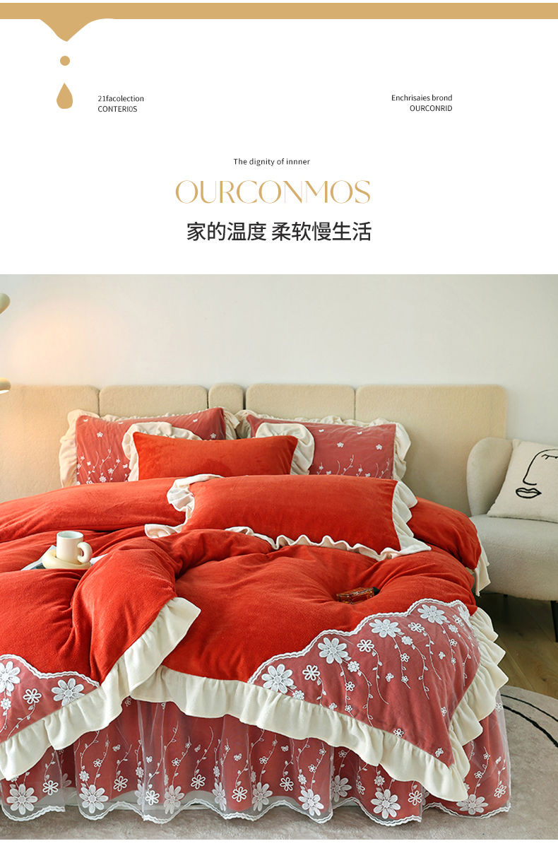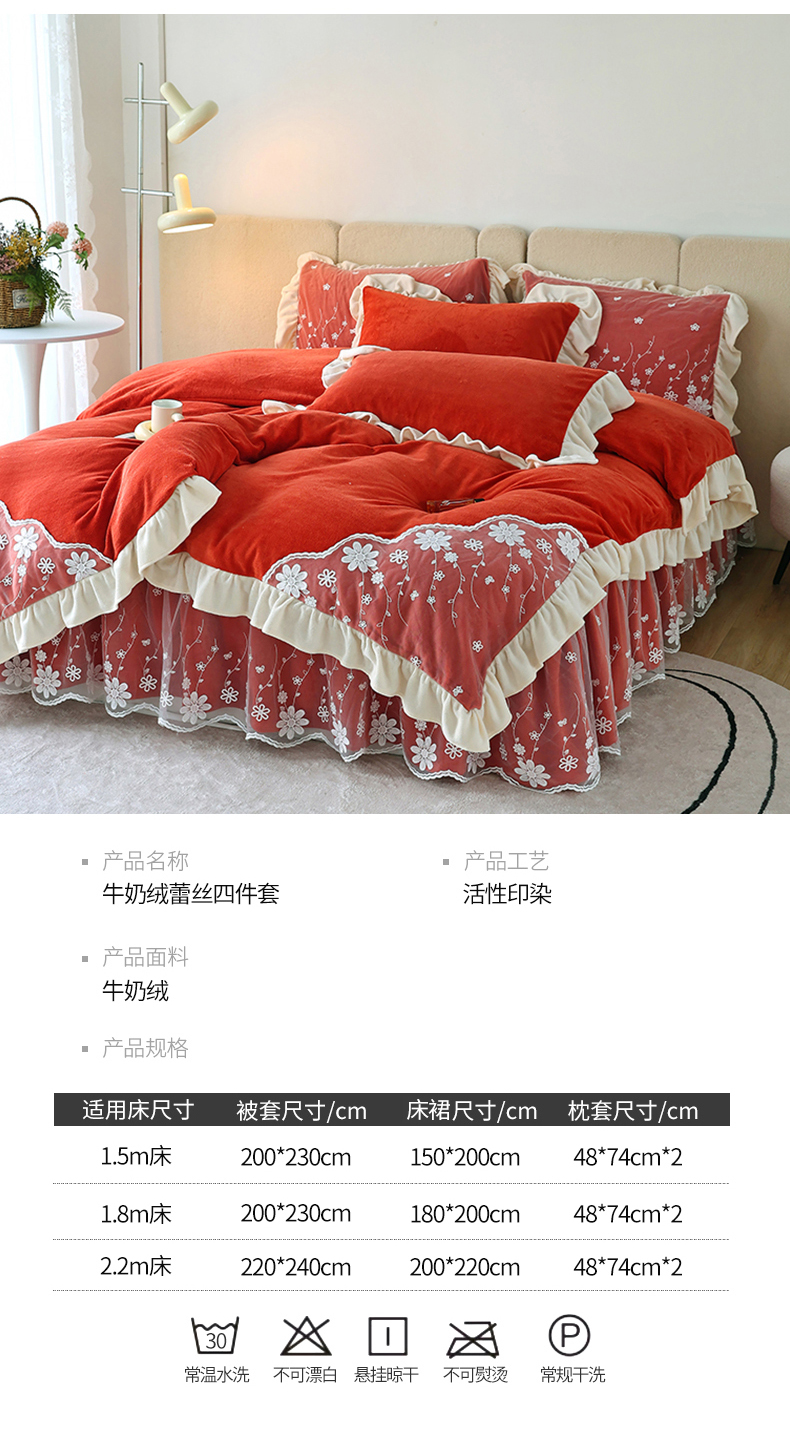 商品名称:(总)睡美人 2025新款牛奶绒蕾丝款床裙四件套花仙子系列
