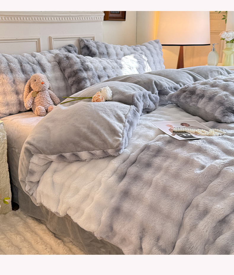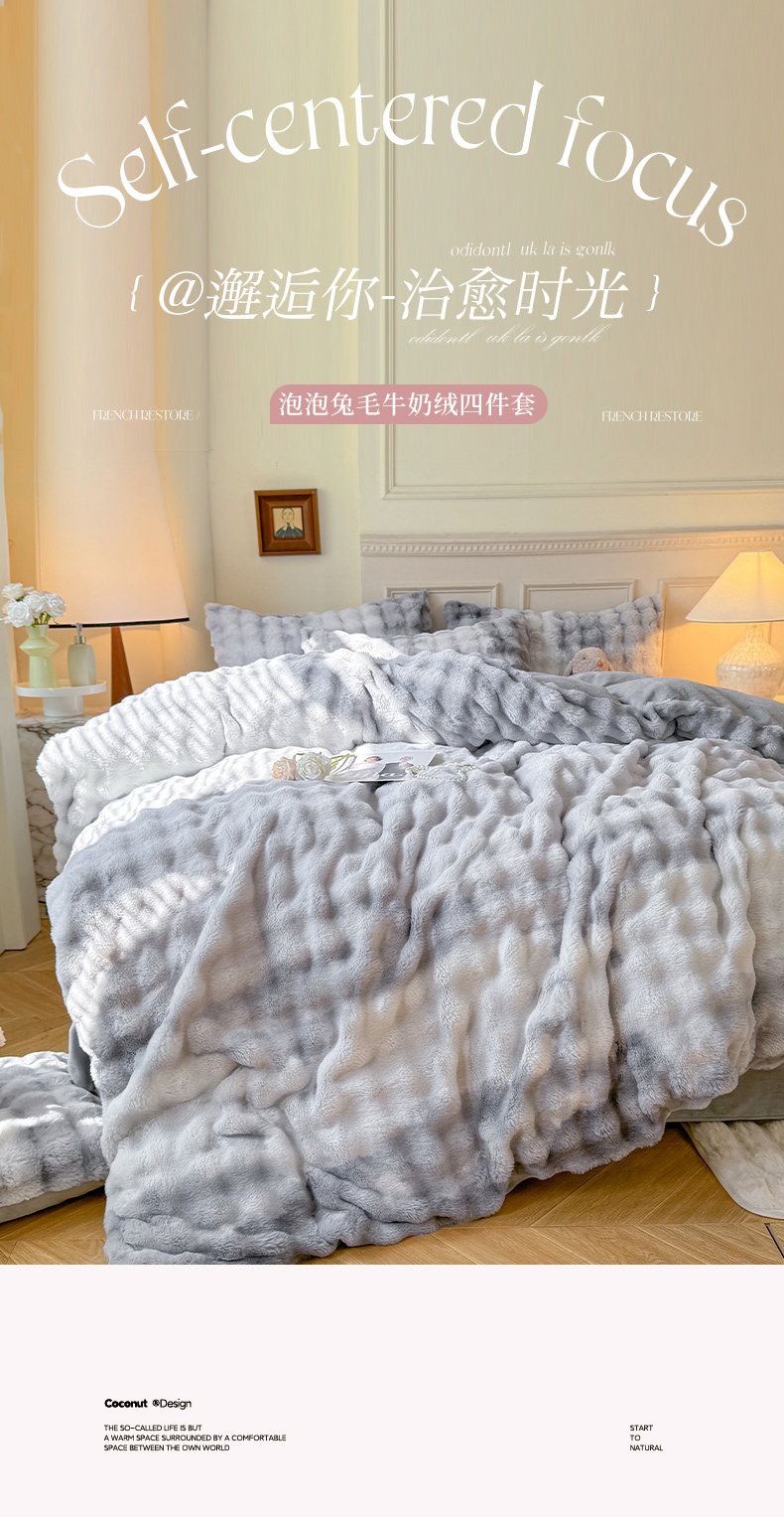 唐人居 2025新款泡泡兔毛牛奶绒四件套--七彩 七彩紫