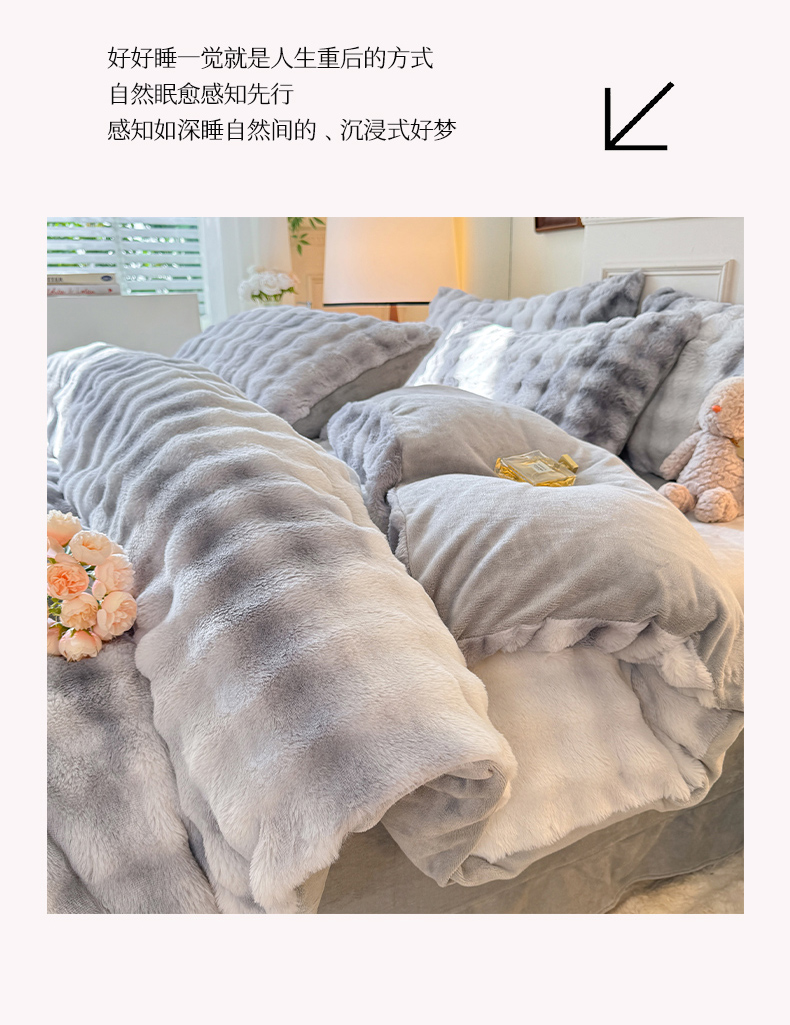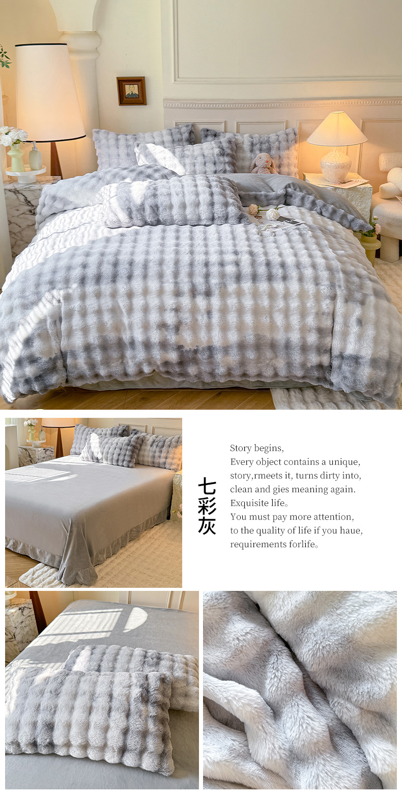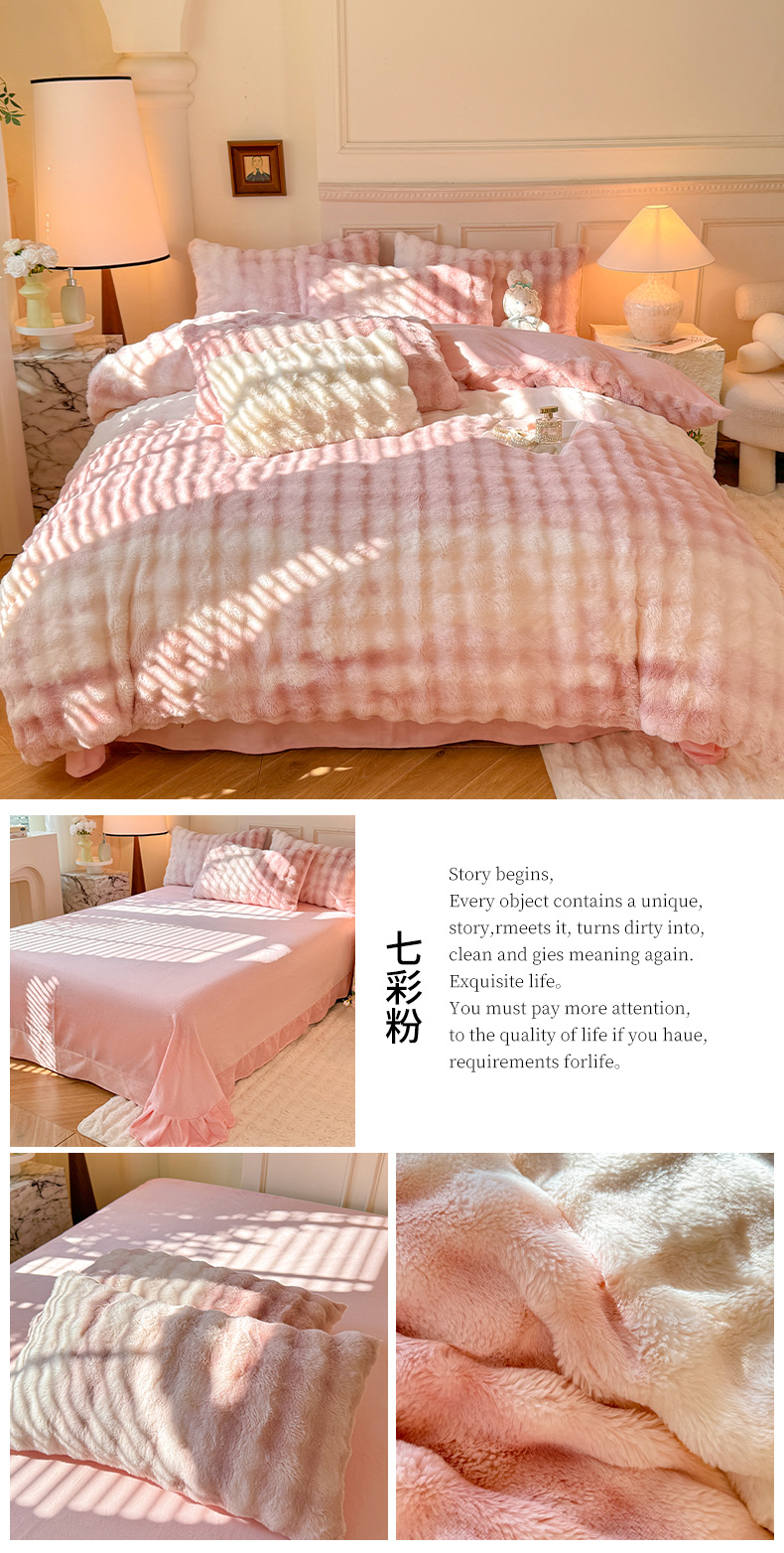 商品名称:唐人居 2025新款泡泡兔毛牛奶绒四件套--七彩 七彩紫