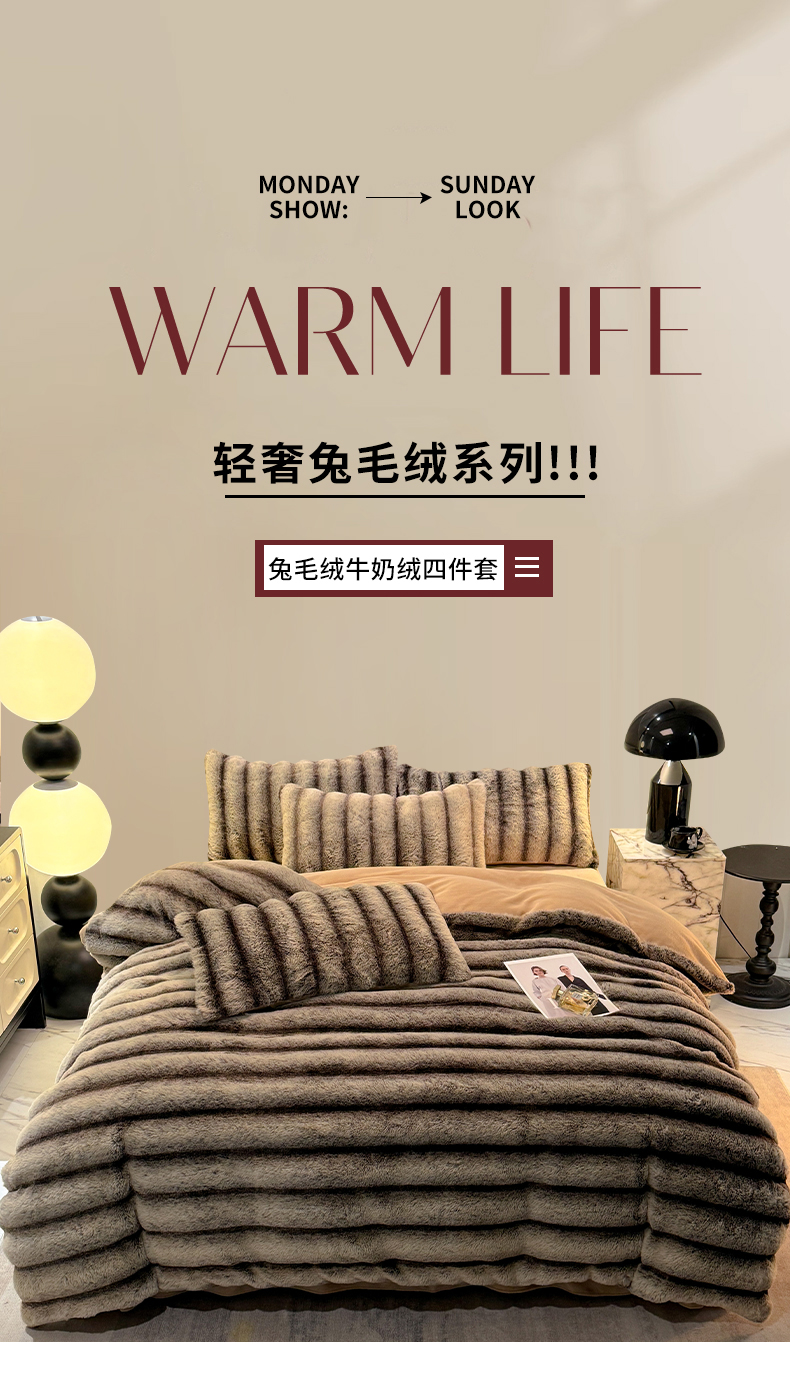 (总)唐人居 2025新款兔毛绒牛奶绒四件套--条纹