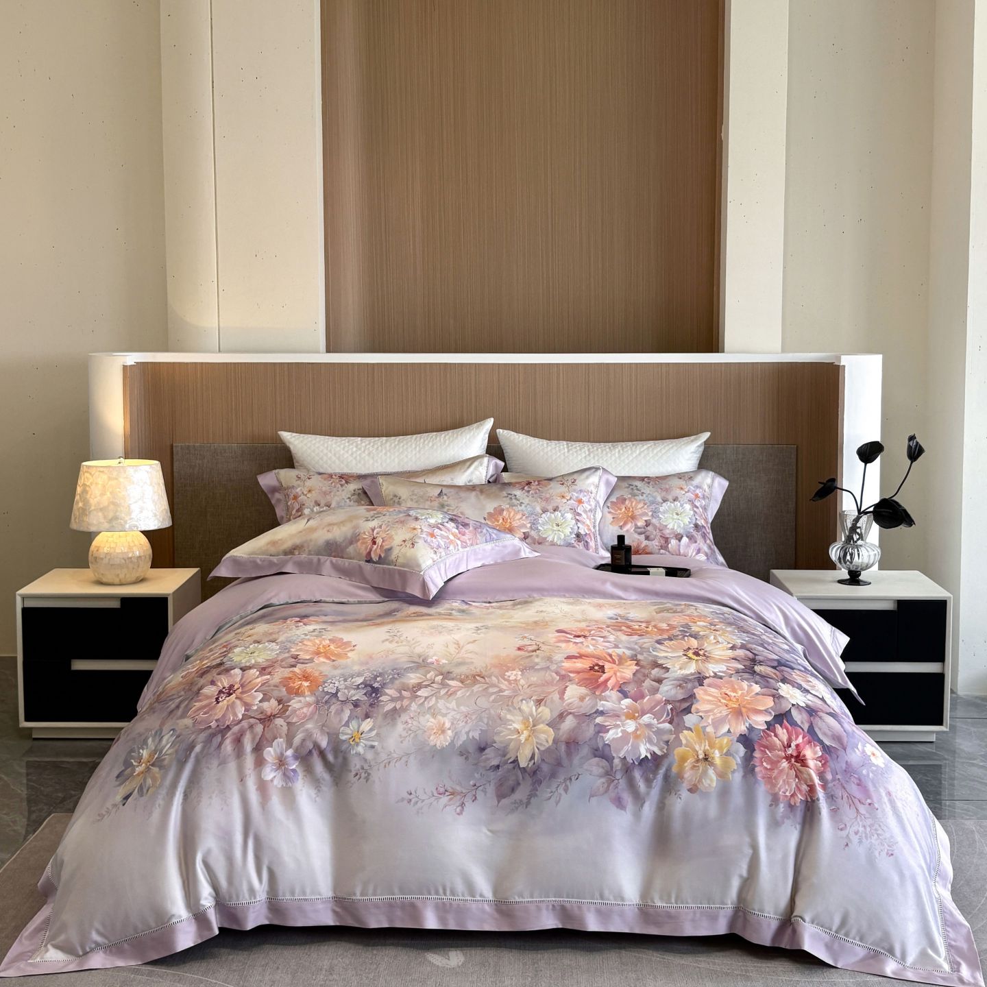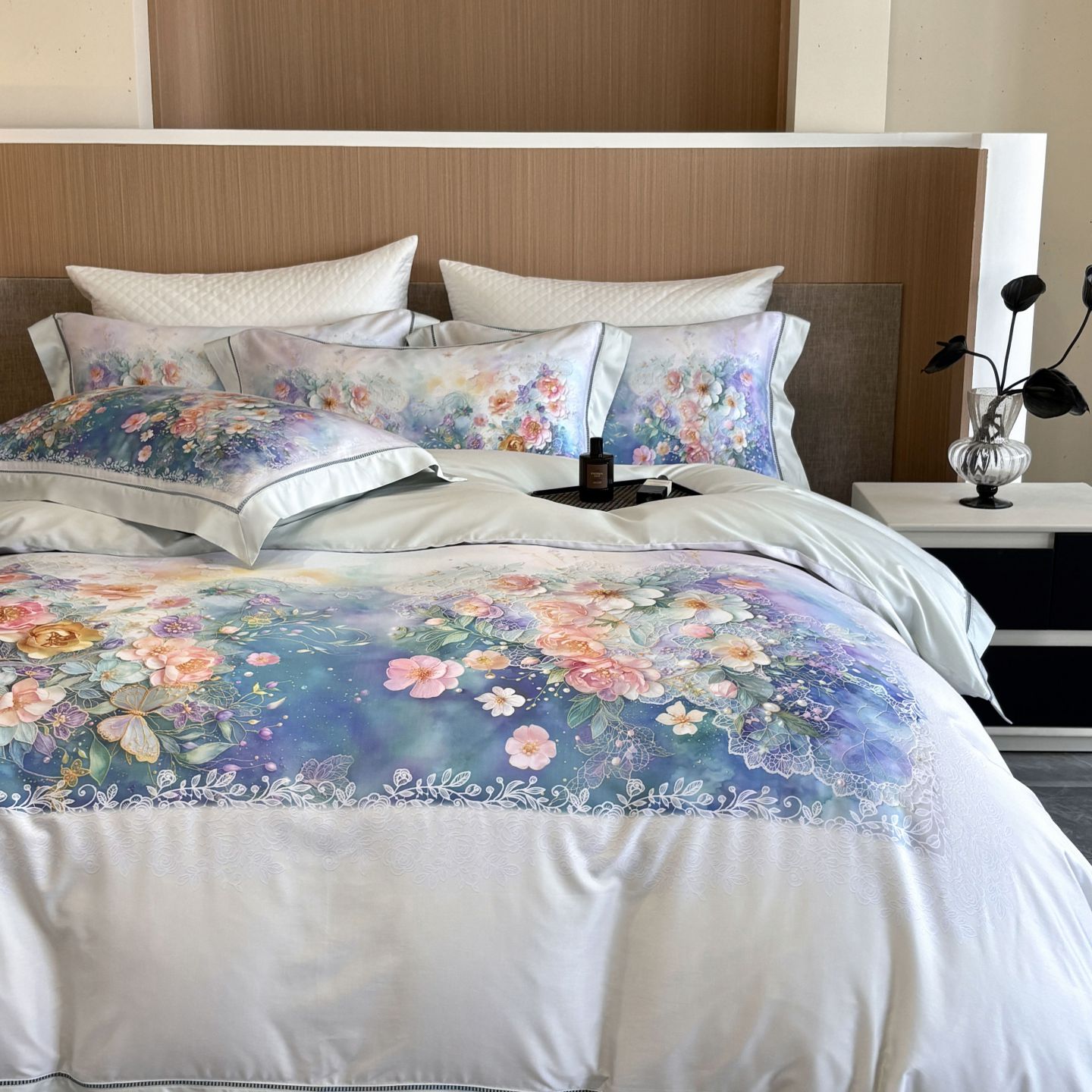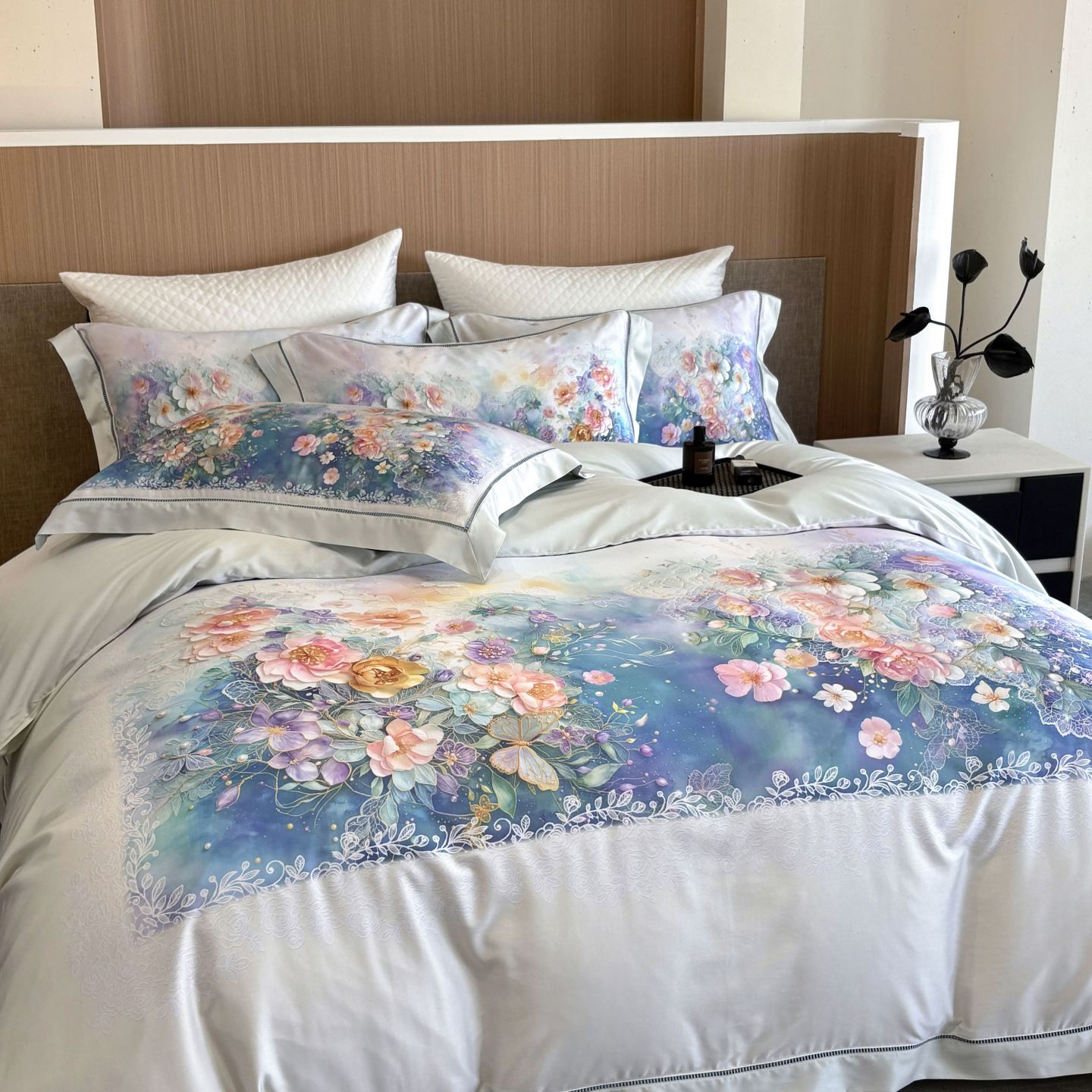 (总)佳汐蓝家纺 2025新款100支全棉贡缎数码印花四件套-画蝶,画蝶