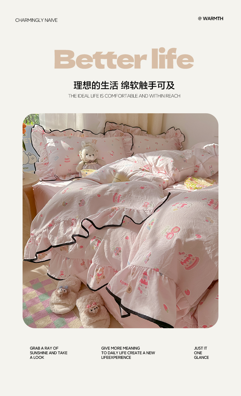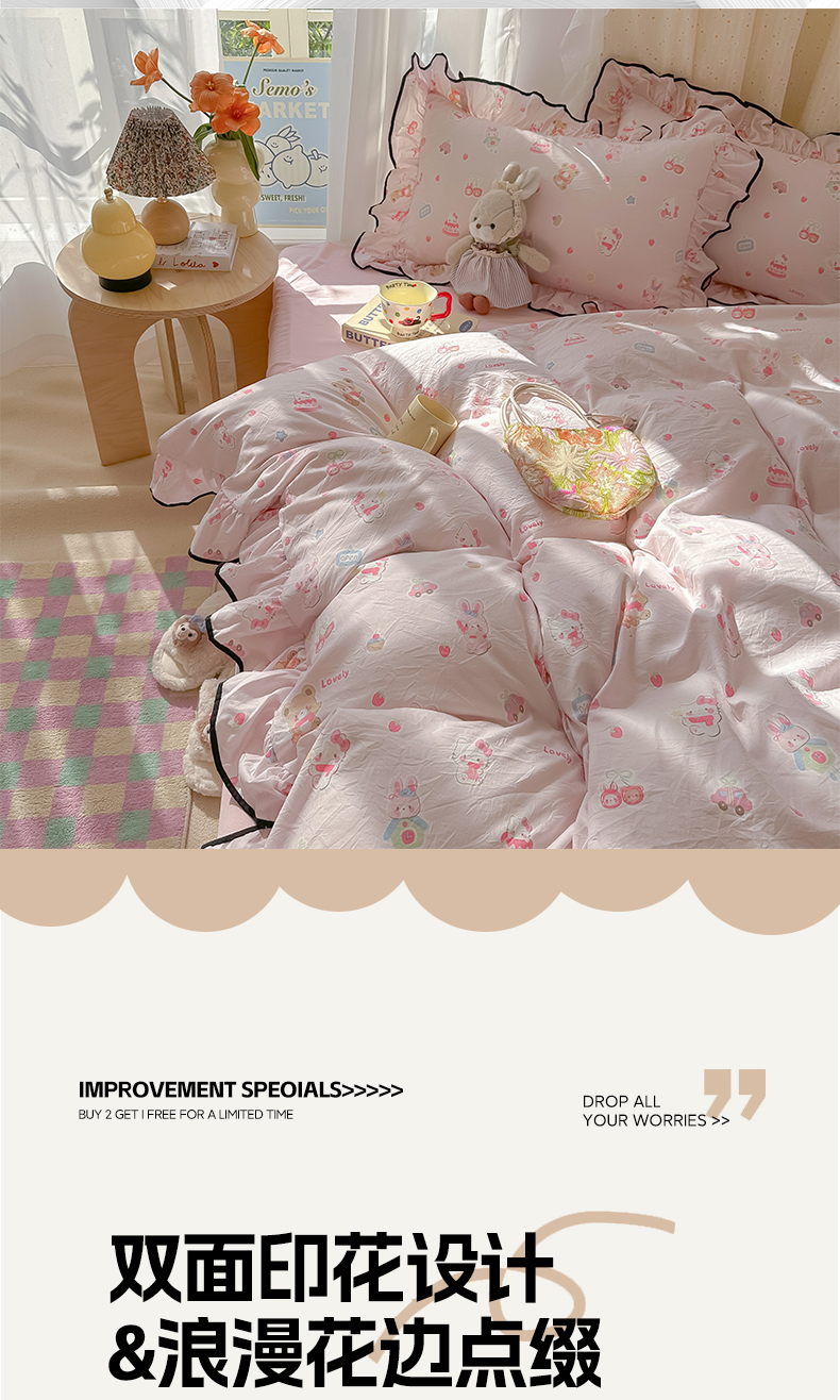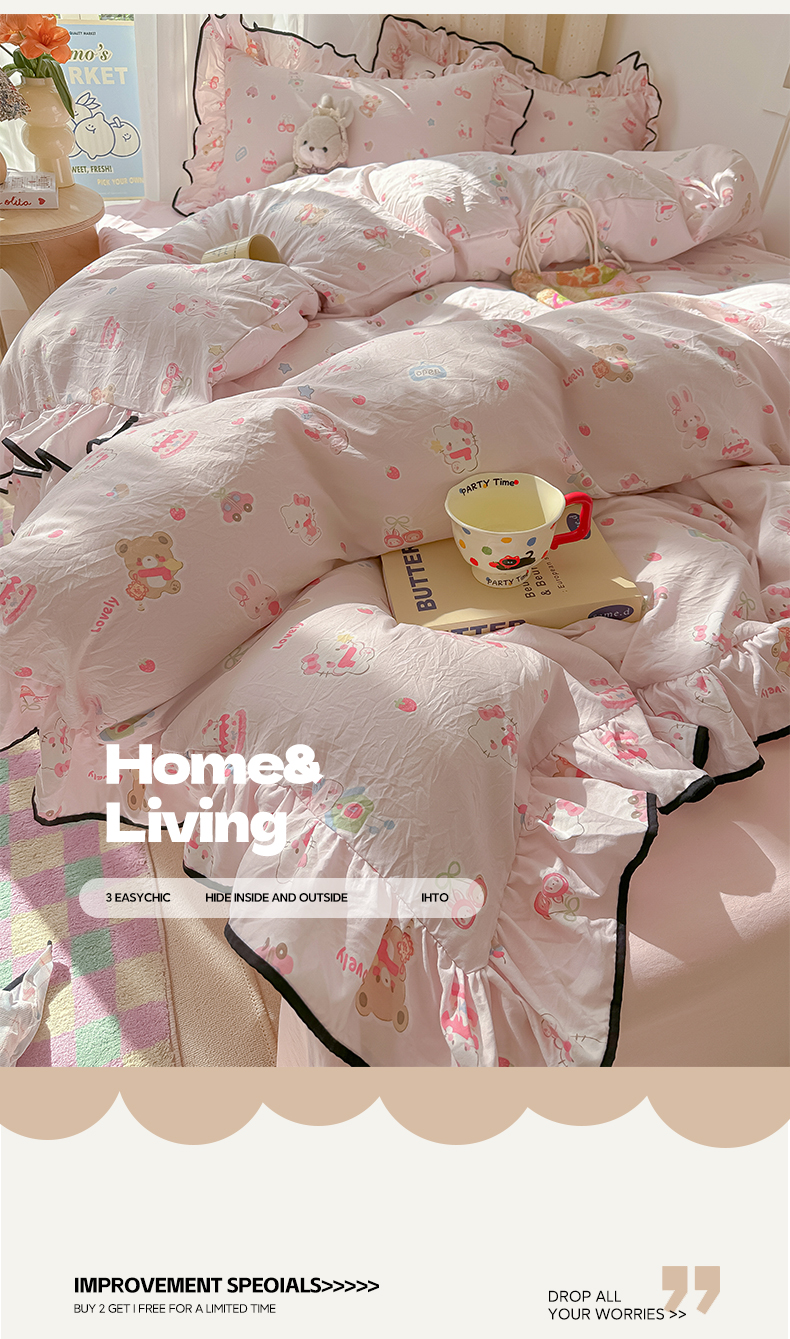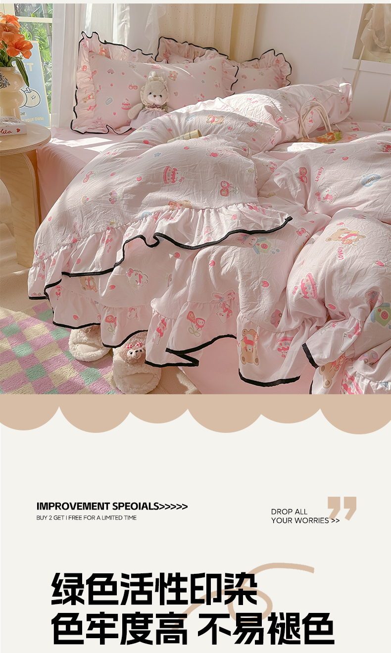 当前位置: 91家纺网 > 商品网购 > 床品套件 > 四件套 > 其它四件套 > 韩巢家纺 2025新款水洗棉大花边被套四件套直播热销款学生宿舍被罩床单三件套(提供卖家秀) 软糖猫【大花边款】