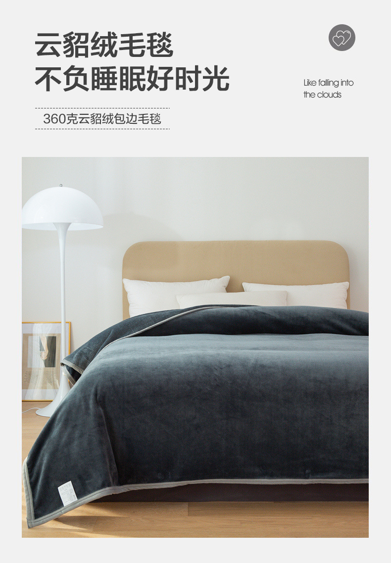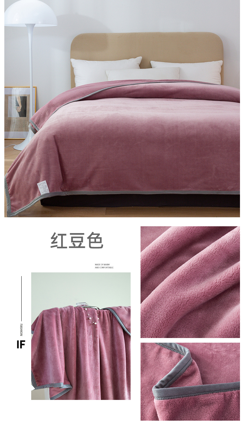 商品名称:(总)兰紫橙家纺 2025新款跨境纯色云貂绒360克包边毛毯毯子多功能盖毯