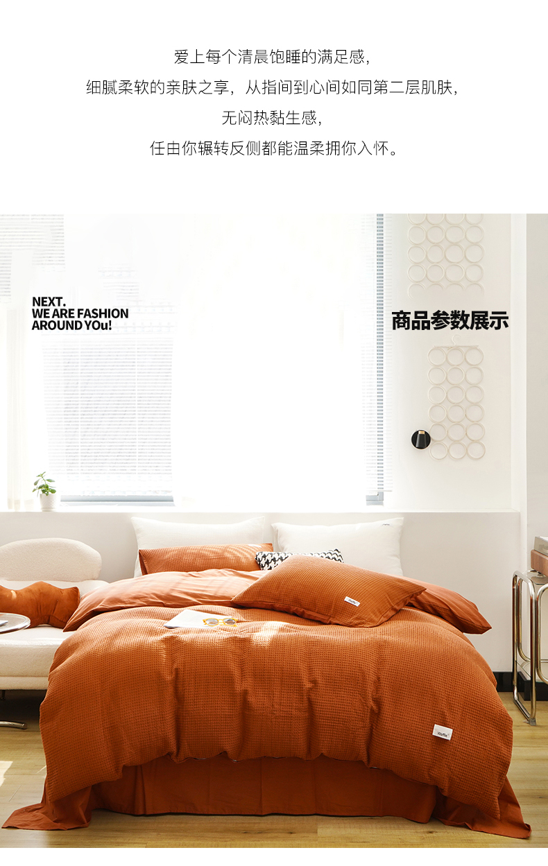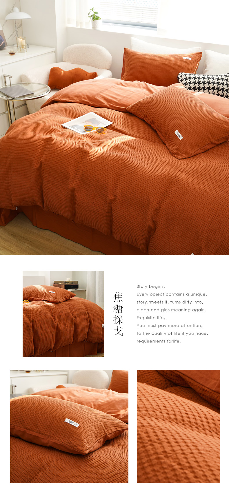 当前位置: 91家纺网 > 商品网购 > 床品套件 > 四件套 > 全棉普通四件套 > 贝尔 PELLHOME 小红书民宿全棉空气提花华夫格四件套纯棉水洗棉小众(可抖音代发) 焦糖探戈