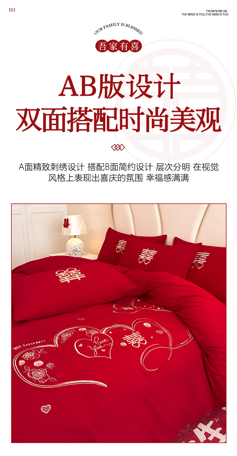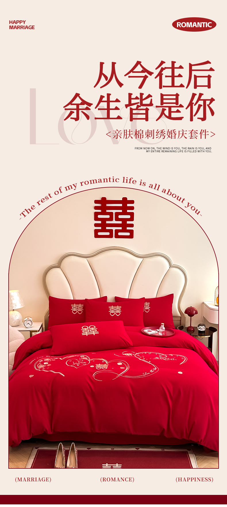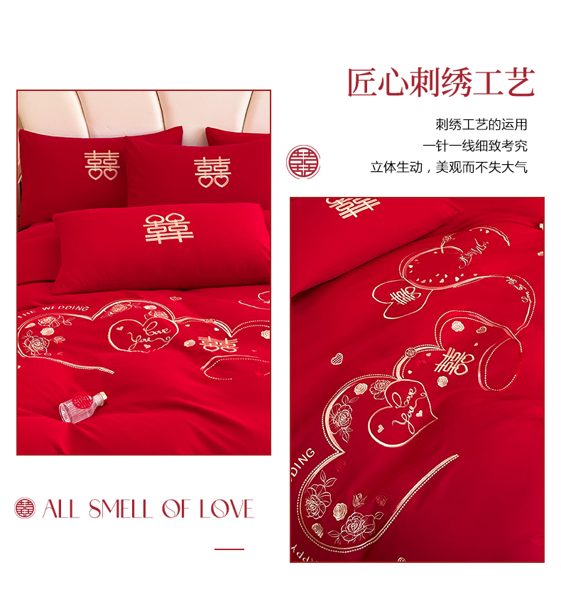 (总)火麒麟家纺 2024新款亲肤棉刺绣婚庆四件套,百年好合,成双成对,好姻缘,贺新婚,佳偶天成,龙凤情缘,玫瑰之恋,天作之合,甜甜蜜蜜,喜结良缘,喜事连连,相亲相爱,心心相印,新婚快乐,一生相伴,以爱之名