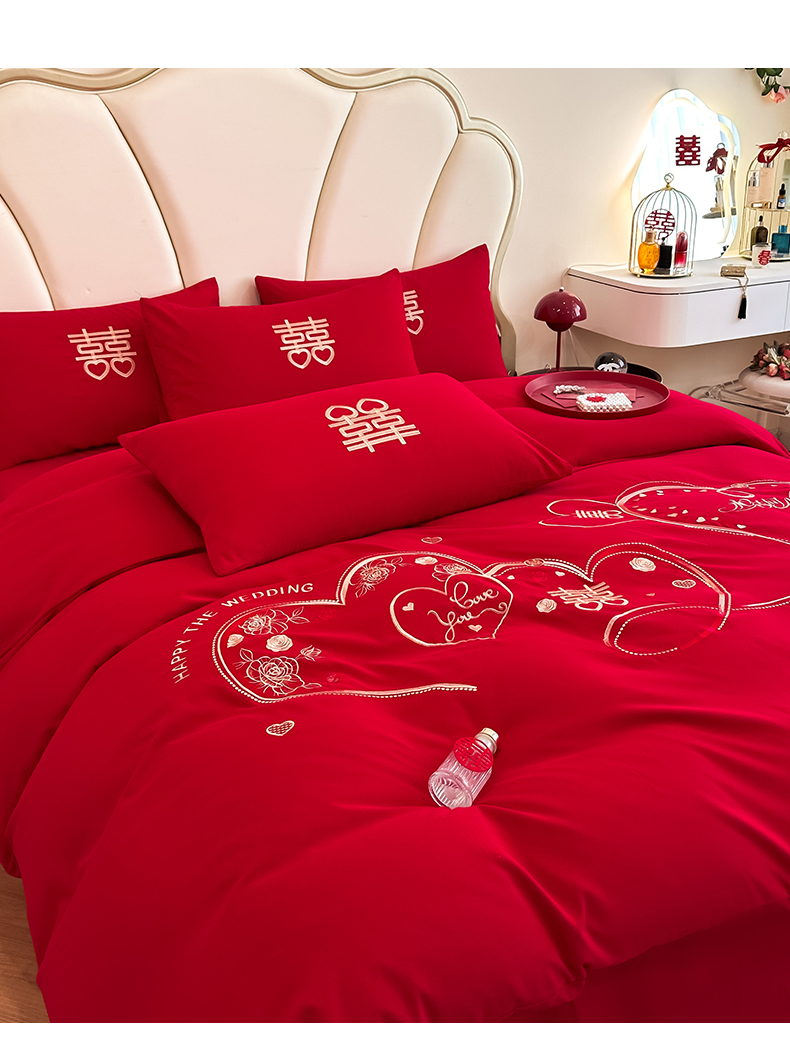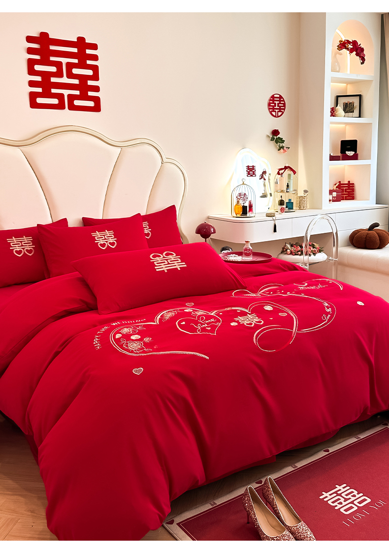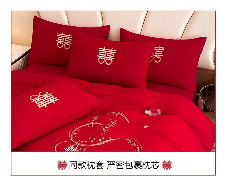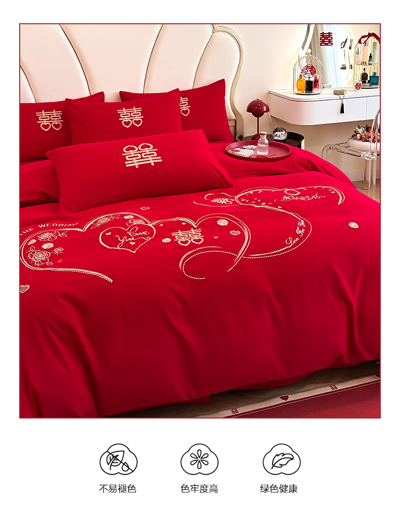 商品名称:火麒麟家纺 2025新款亲肤棉婚庆刺绣四件套 永结同心