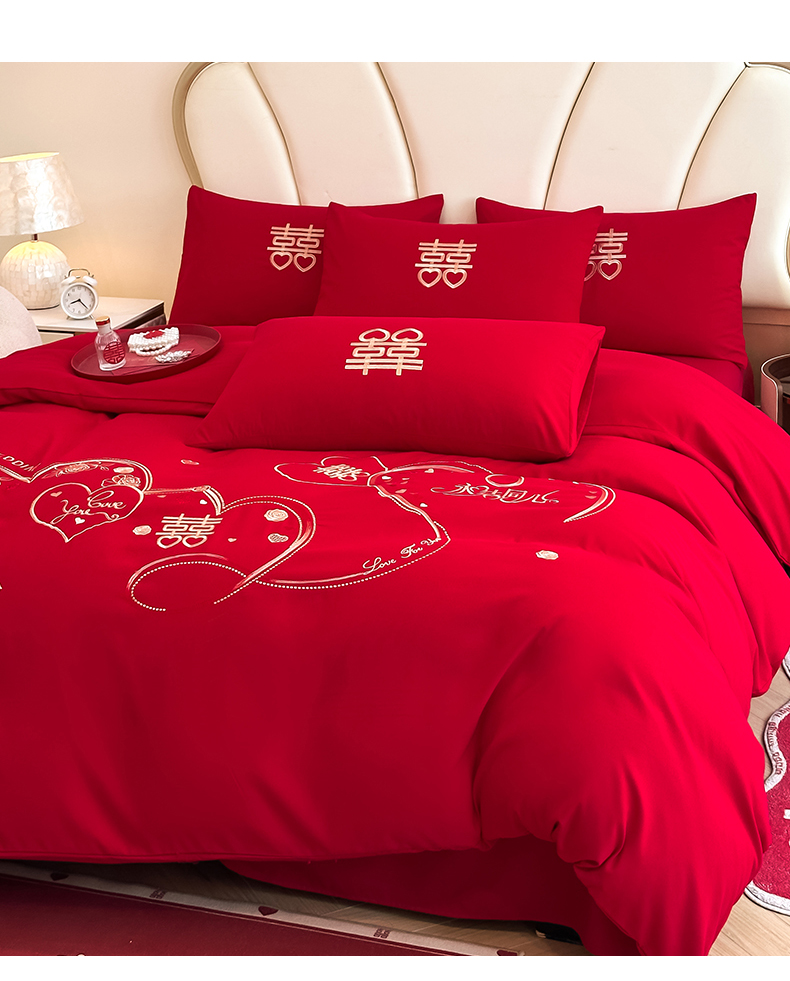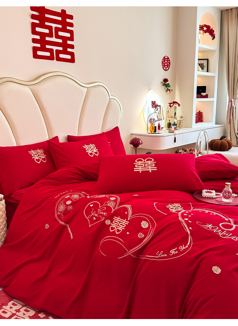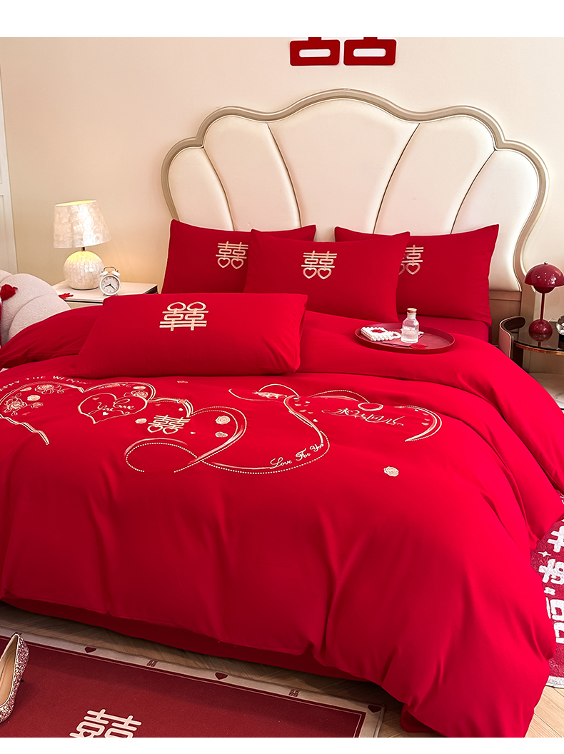火麒麟家纺 2025新款亲肤棉婚庆刺绣四件套 永结同心