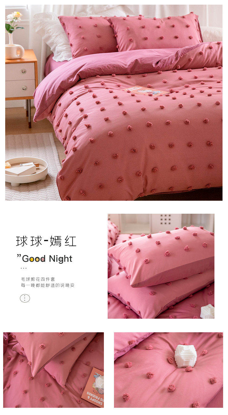 (总)贝尔 PELLHOME 复古风毛球剪花日式简约套件全棉水洗棉纯素色四件套(春节不打烊)