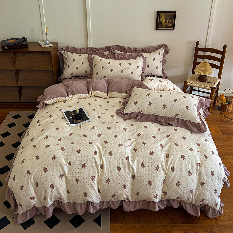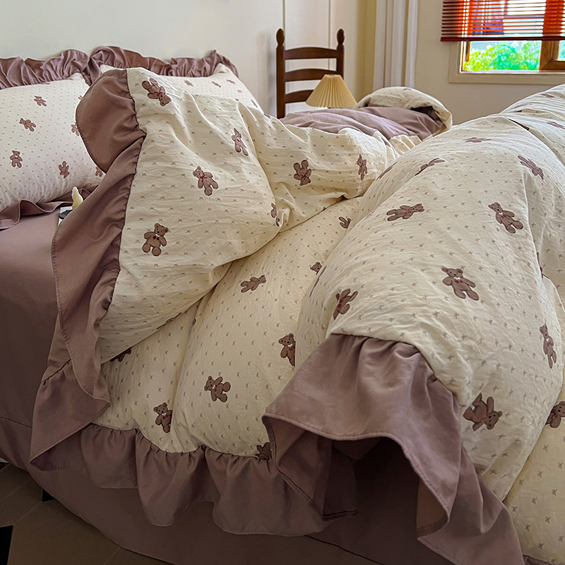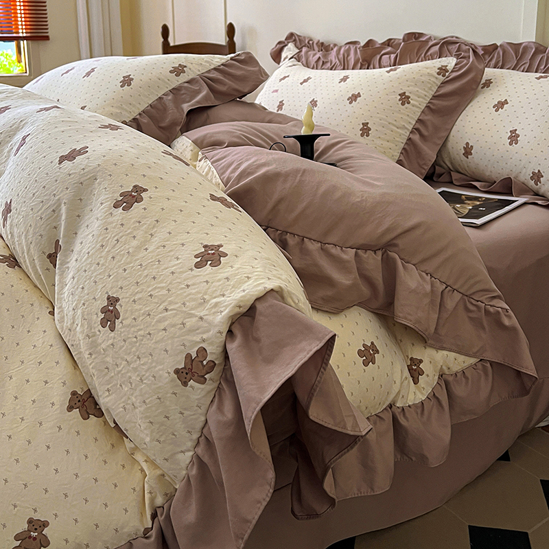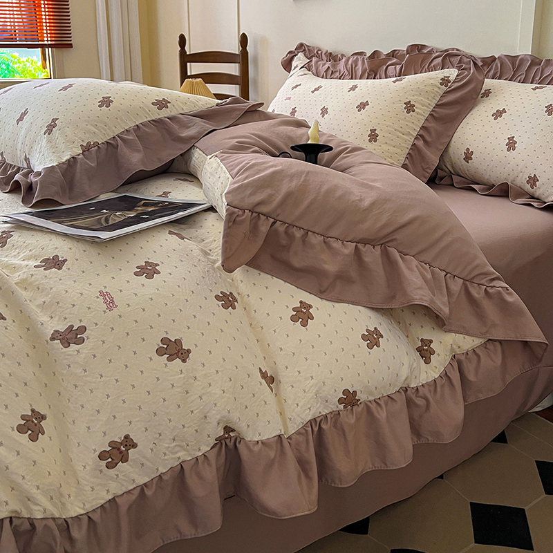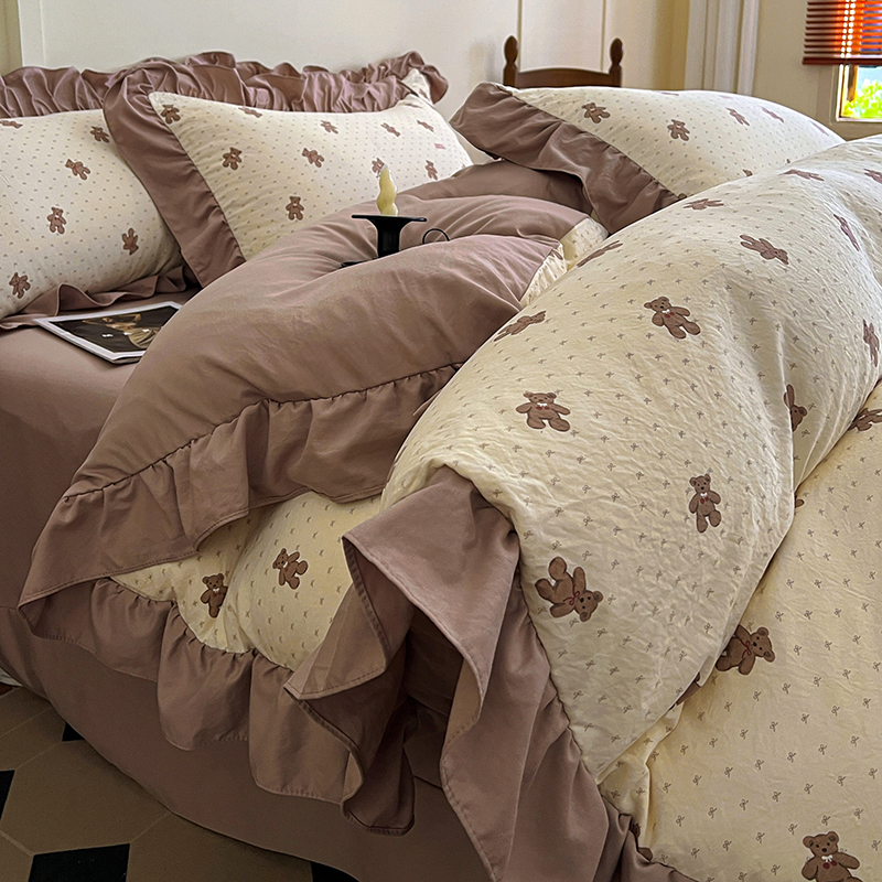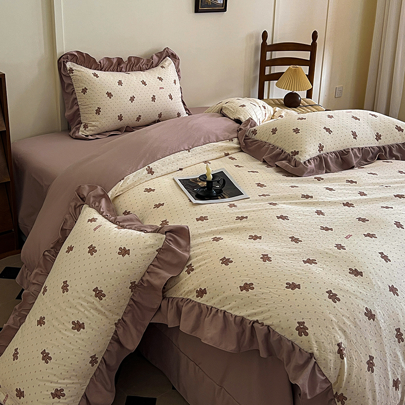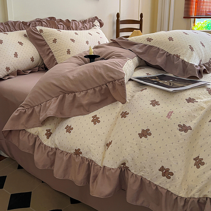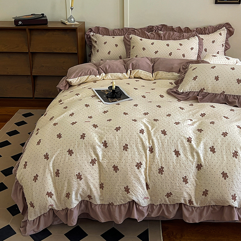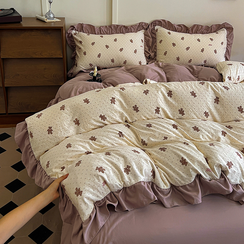 商品名称:梦莱斯 2025新款高克重云感棉四件套-花边款 梦想熊