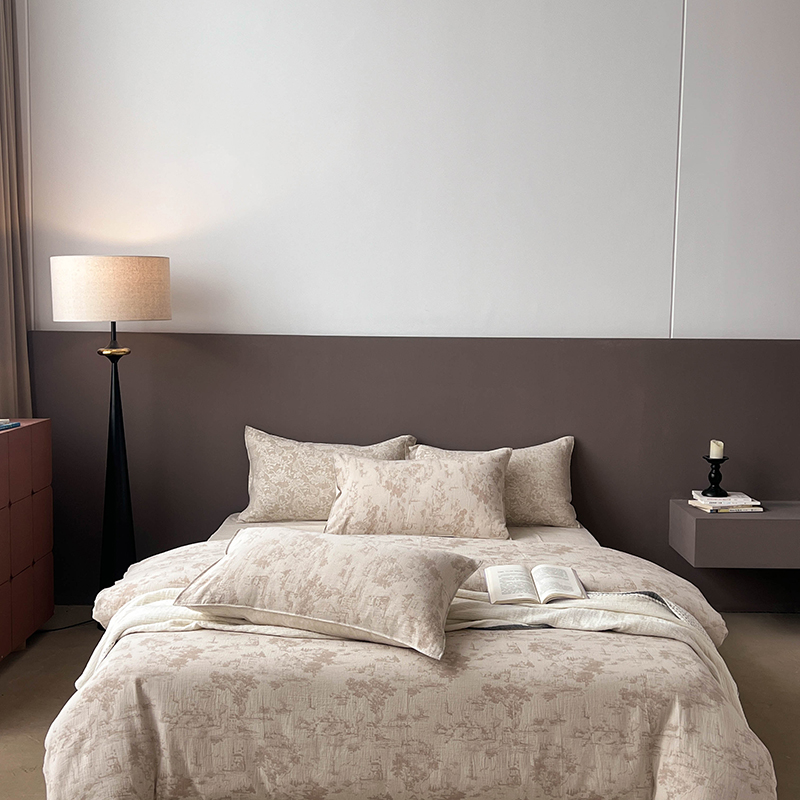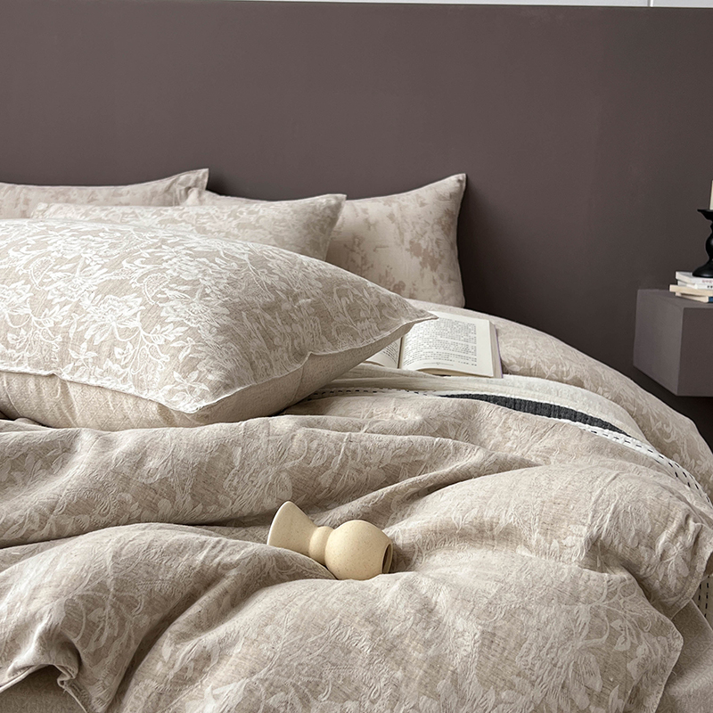 商品名称:贝尔 2025新款棉麻色织提花双层纱简单款四件套 简单款-铃兰深色