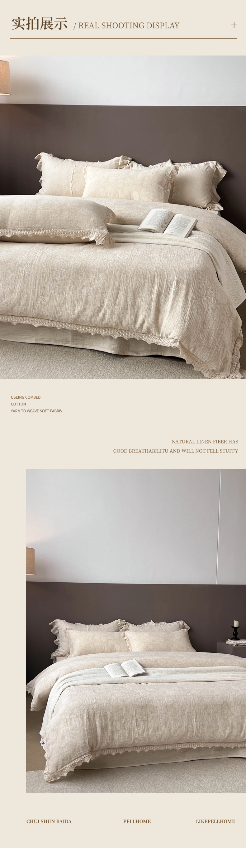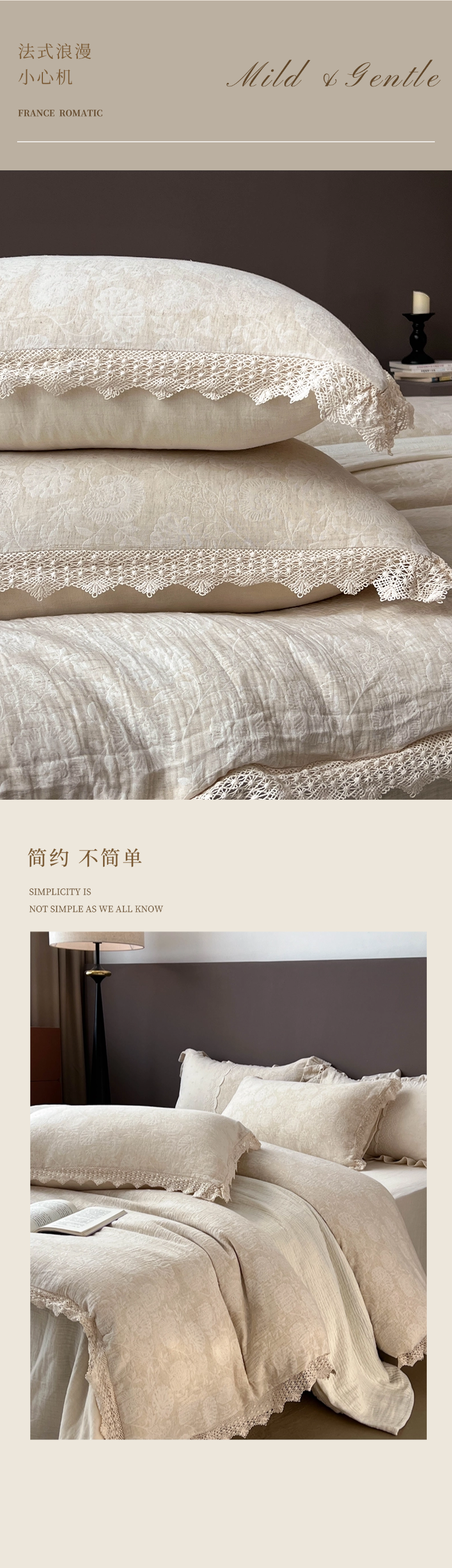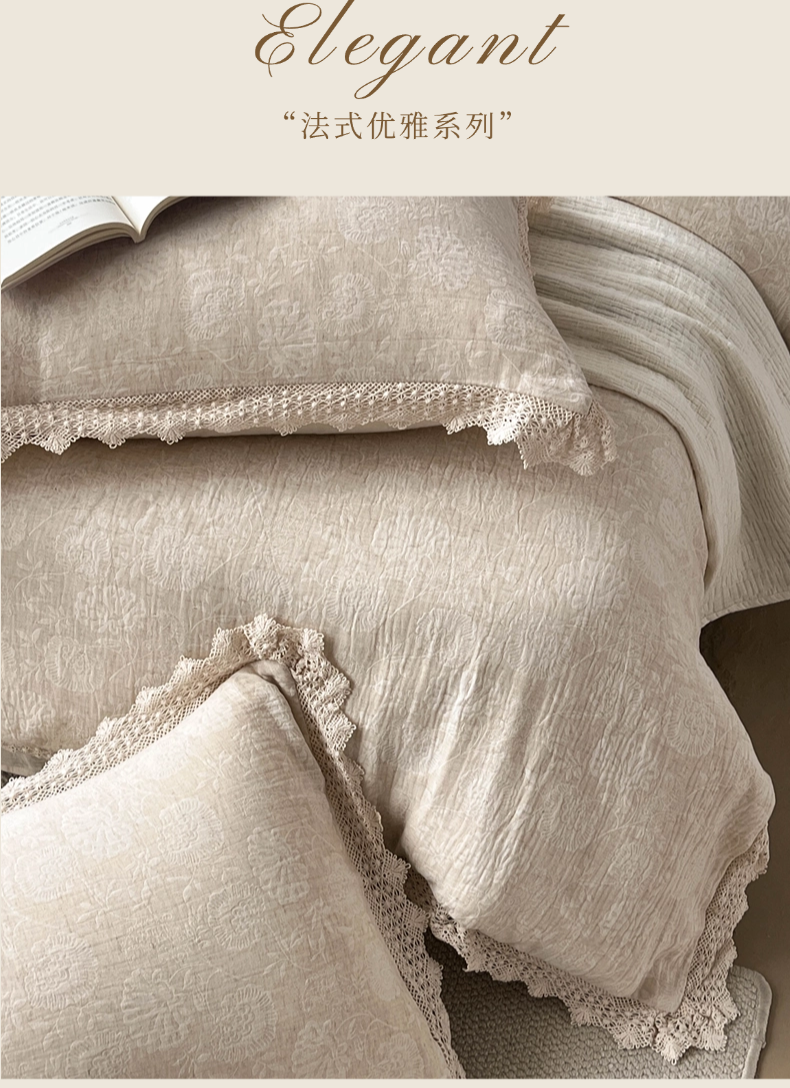 商品名称:贝尔 2025新款棉麻色织提花双层纱镂空花边款四件套 镂空花边-万物生