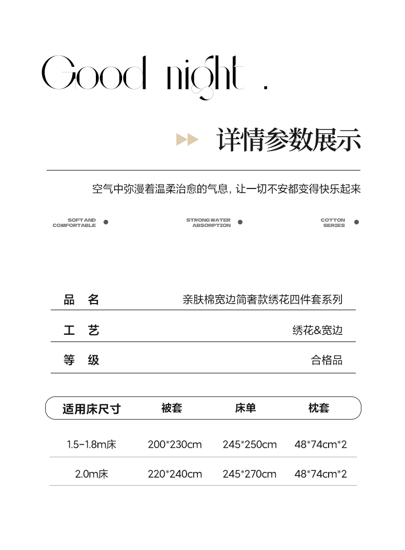 商品名称:(总)博纳家纺 2025新款亲服棉宽边高级简奢款绣花四件套-漫山花野