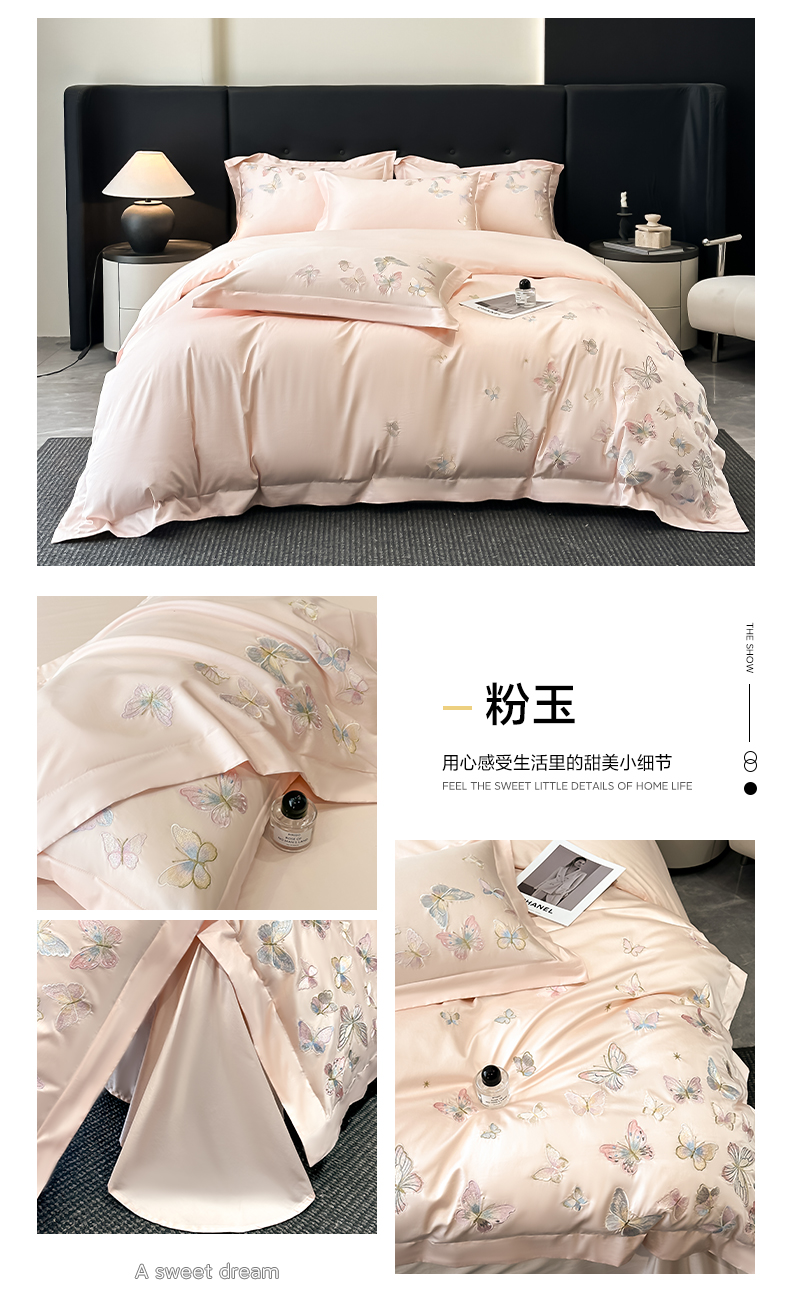 (总)博纳家纺 2025新款纯棉绣花四件套-繁花似梦,繁花似梦-粉玉,繁花似梦-天蓝,繁花似梦-香槟,繁花似梦-香芋紫,繁花似梦-象牙白