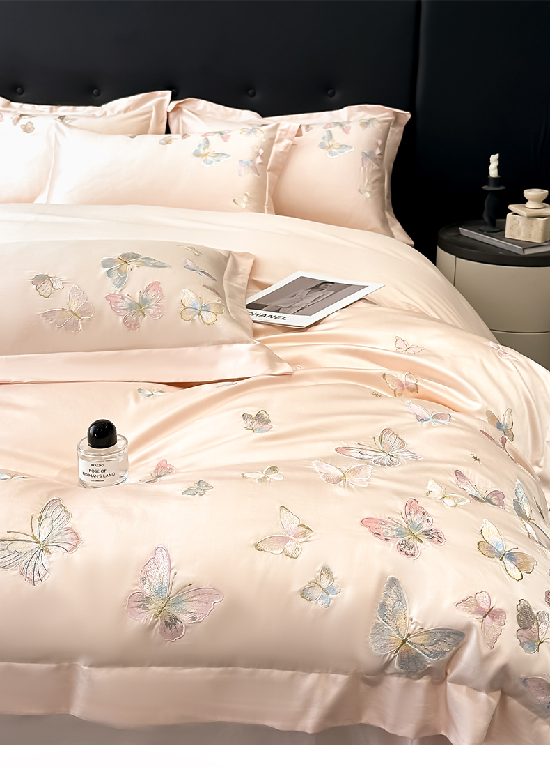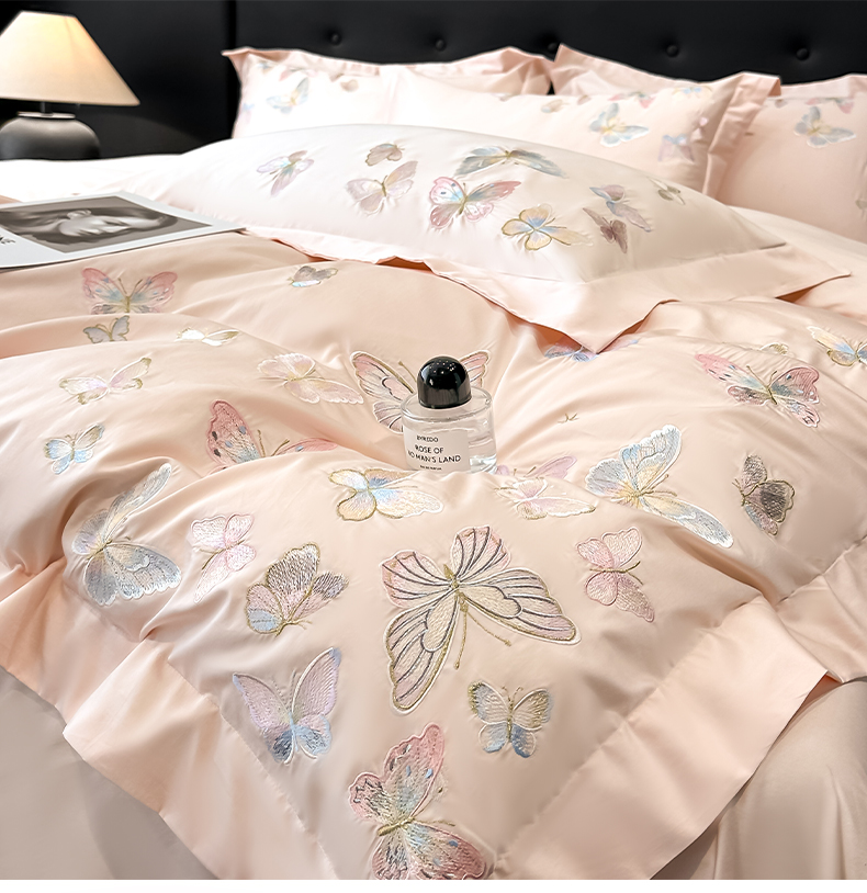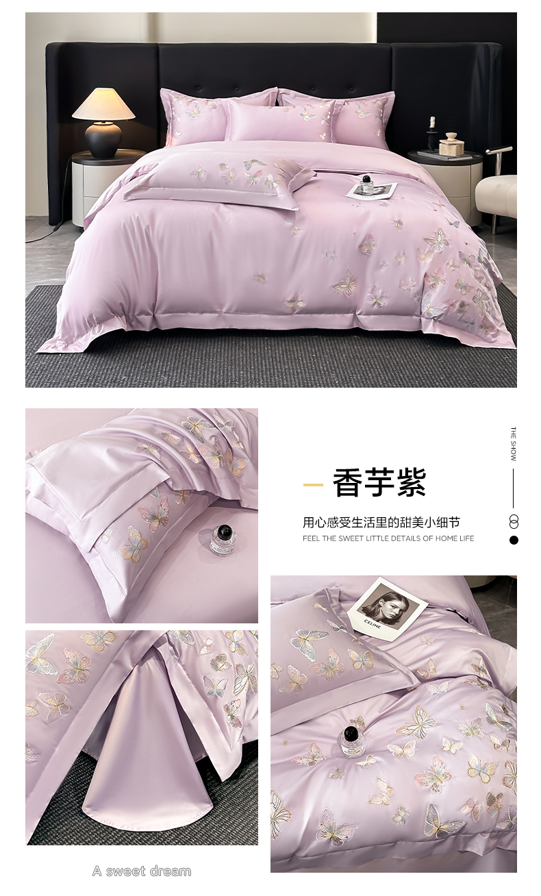 (总)博纳家纺 2025新款纯棉绣花四件套-蝶舞飞扬,象牙白,优雅紫,玉色