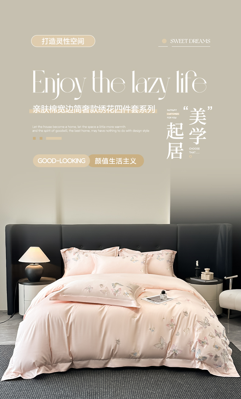 (总)博纳家纺 2025新款亲服棉宽边高级简奢款绣花四件套-漫山花野