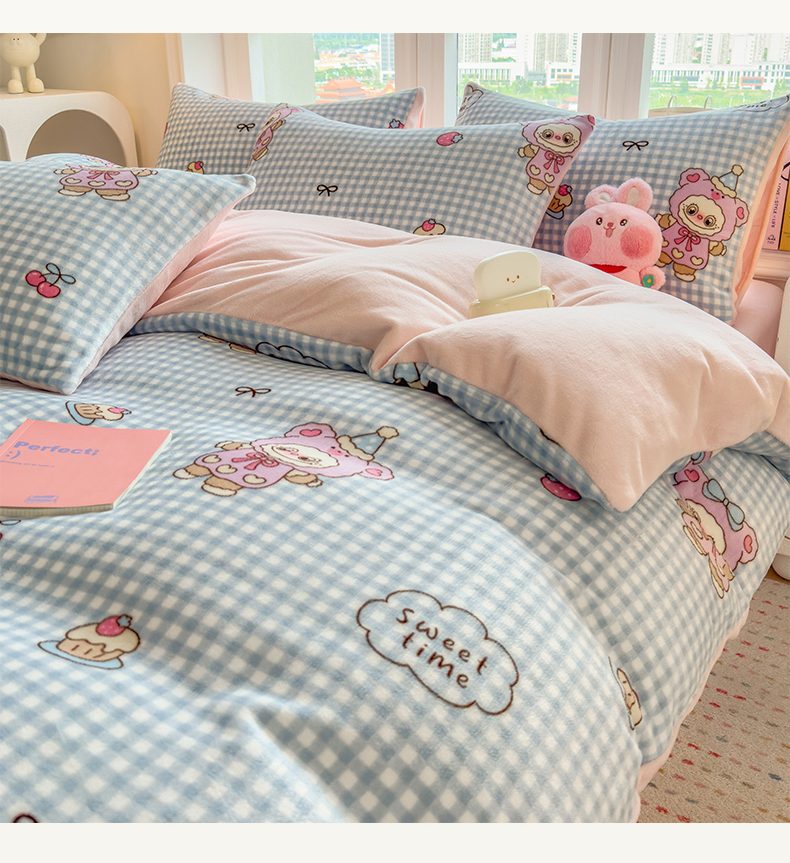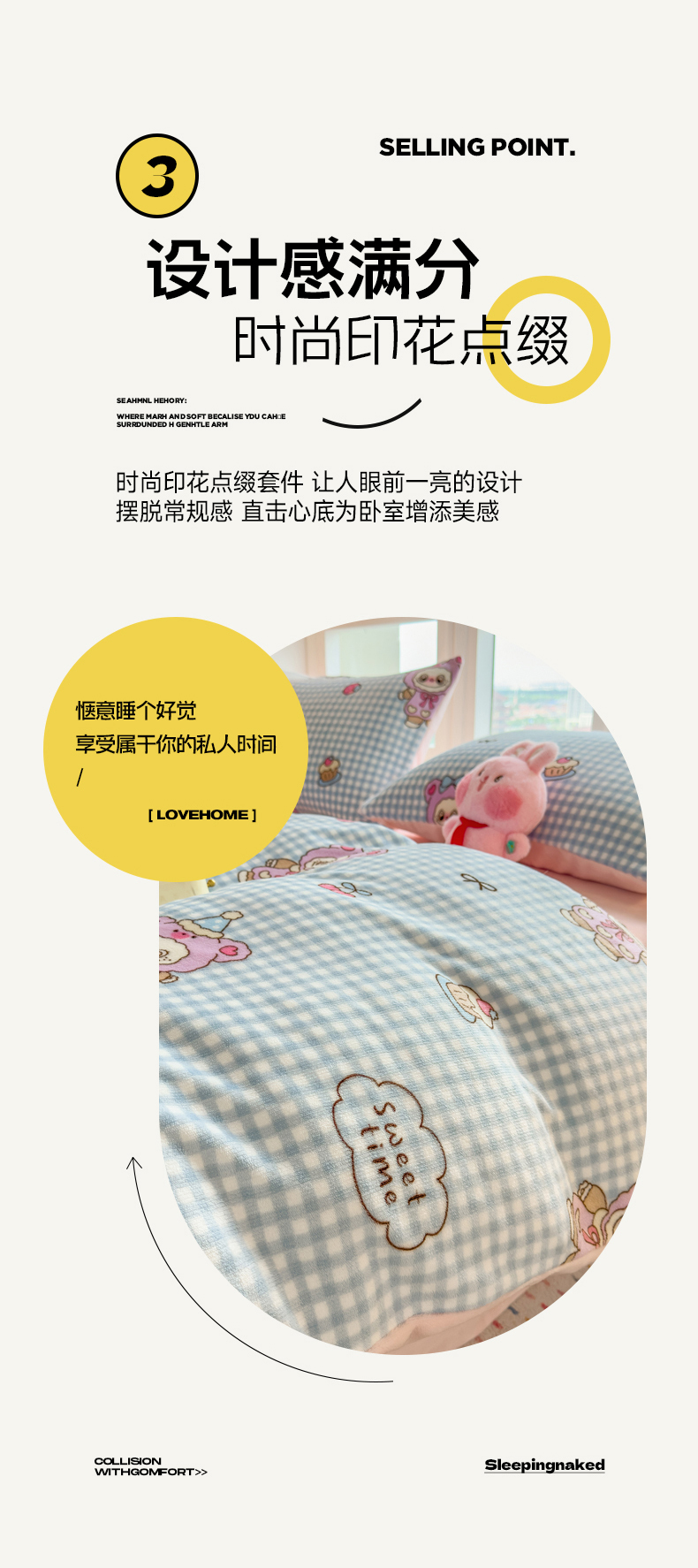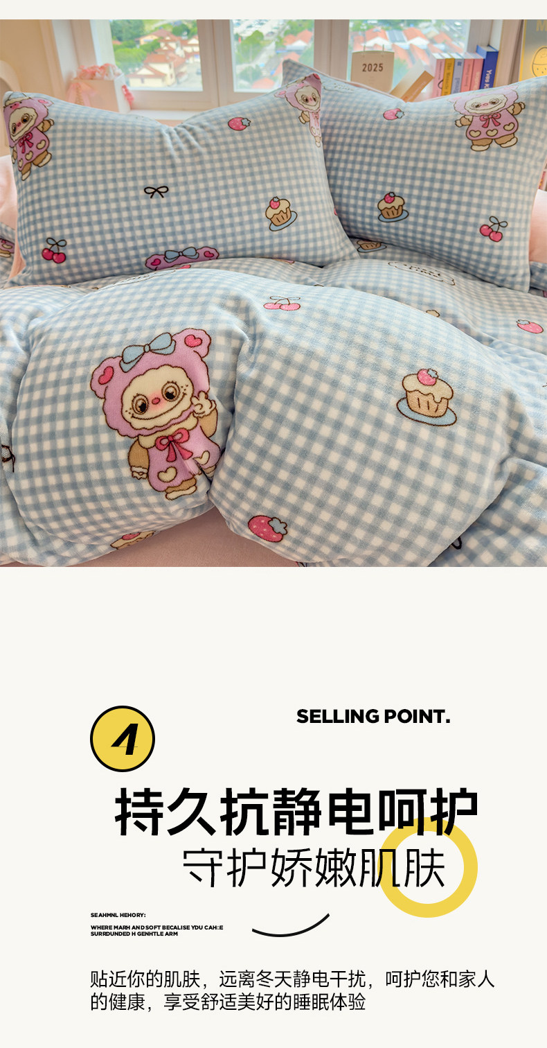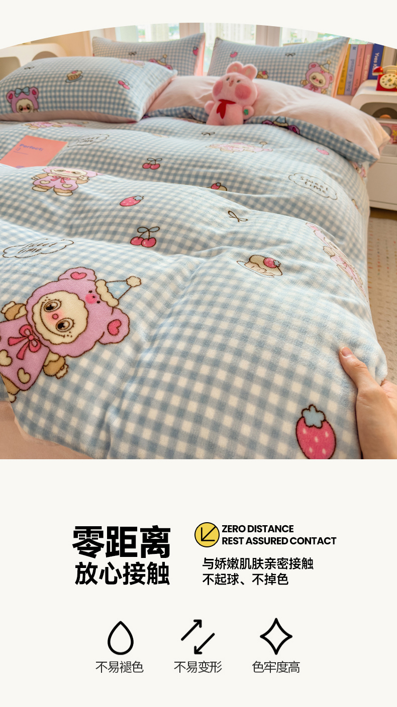 当前位置: 91家纺网 > 商品网购 > 床品套件 > 四件套 > 牛奶绒四件套 > 摩妮卡 摩妮卡 2025新款加厚款小清新牛奶绒印花四件套床单款床笠单被套 开心吉伊