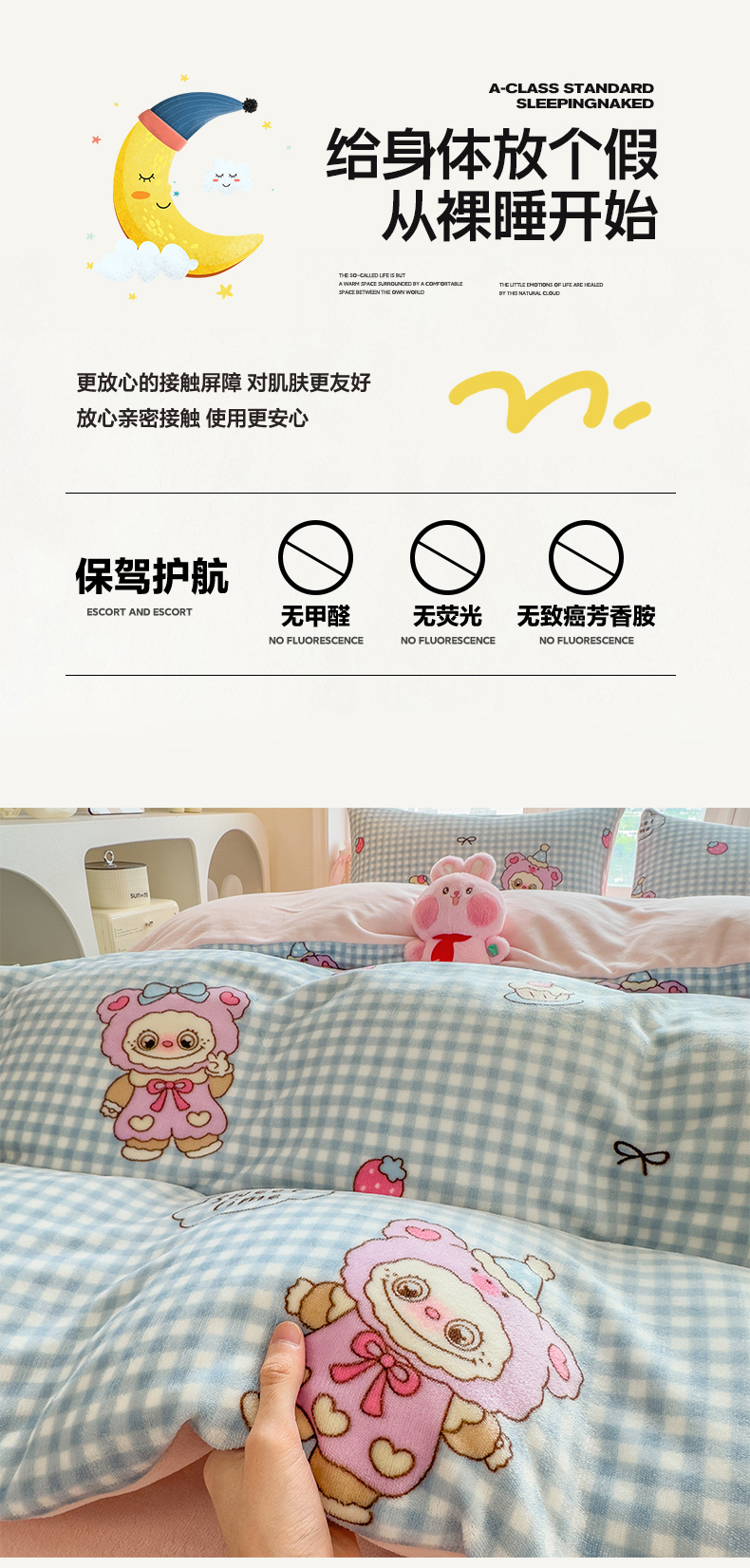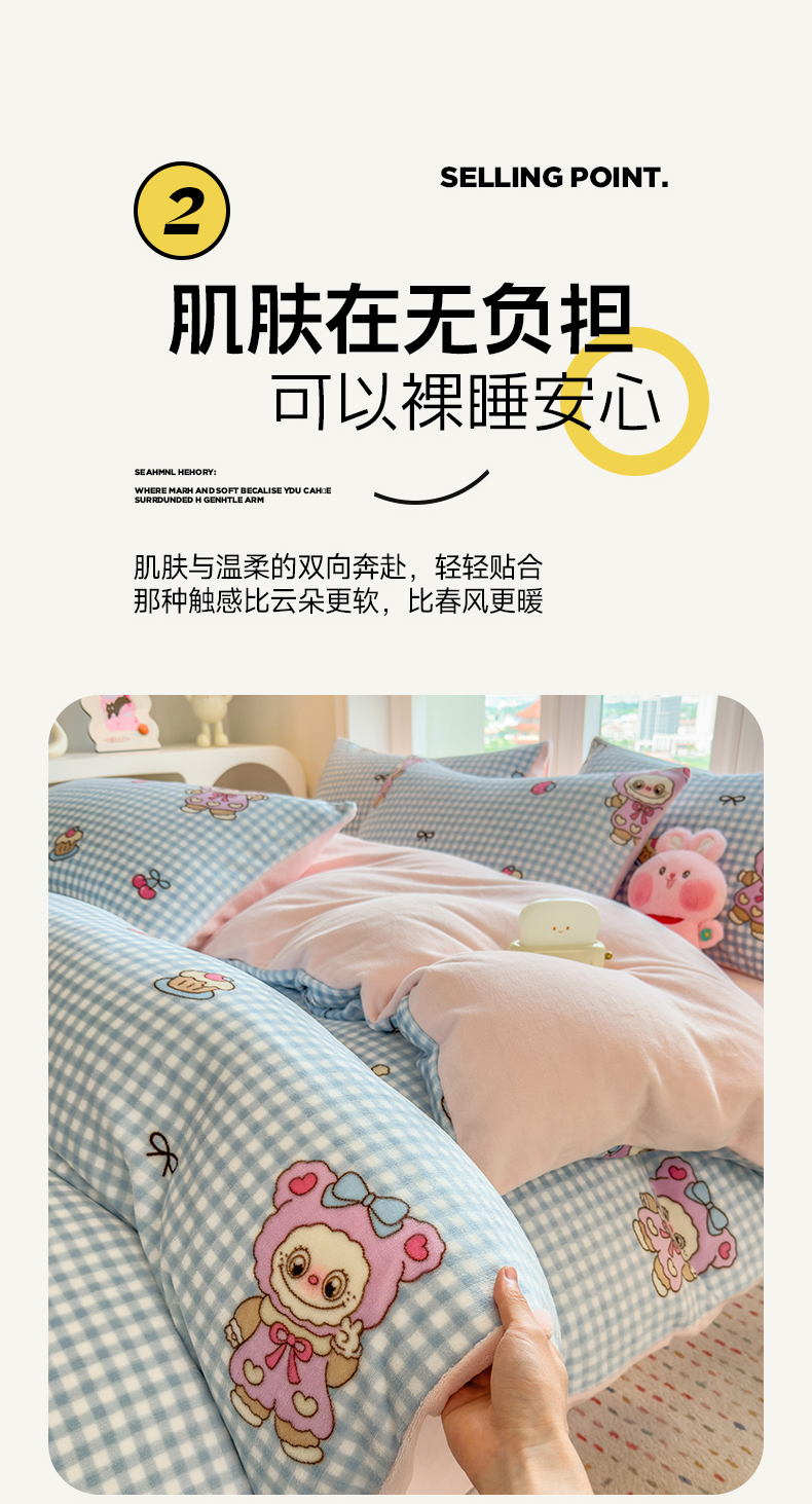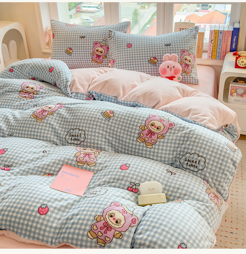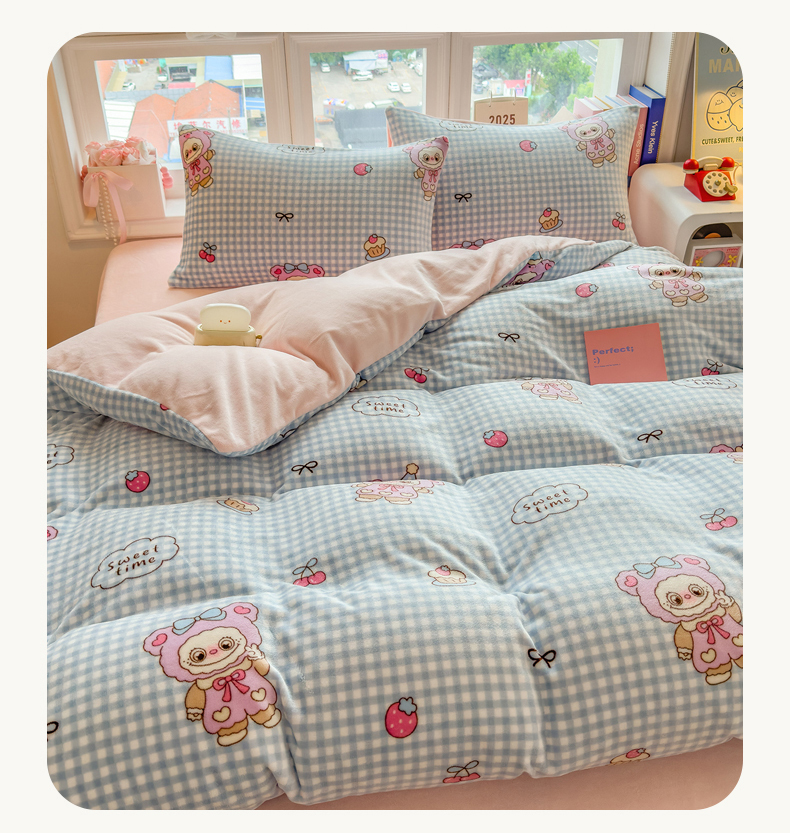 当前位置: 91家纺网 > 商品网购 > 床品套件 > 四件套 > 牛奶绒四件套 > 摩妮卡 摩妮卡 2025新款加厚款小清新牛奶绒印花四件套床单款床笠单被套 开心吉伊