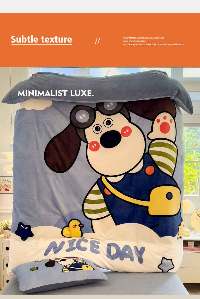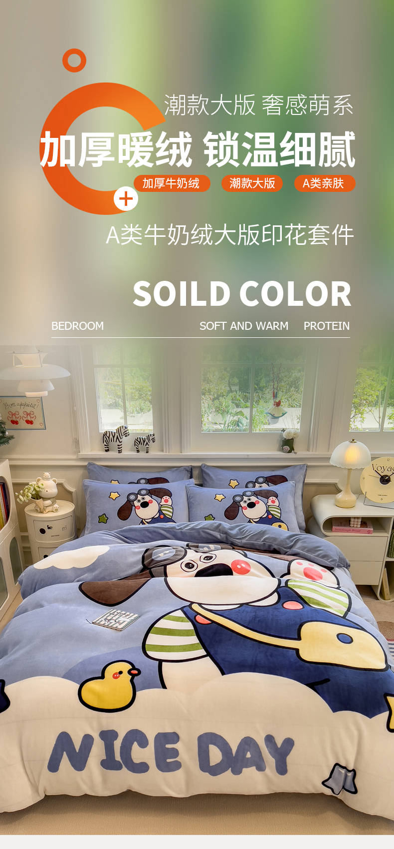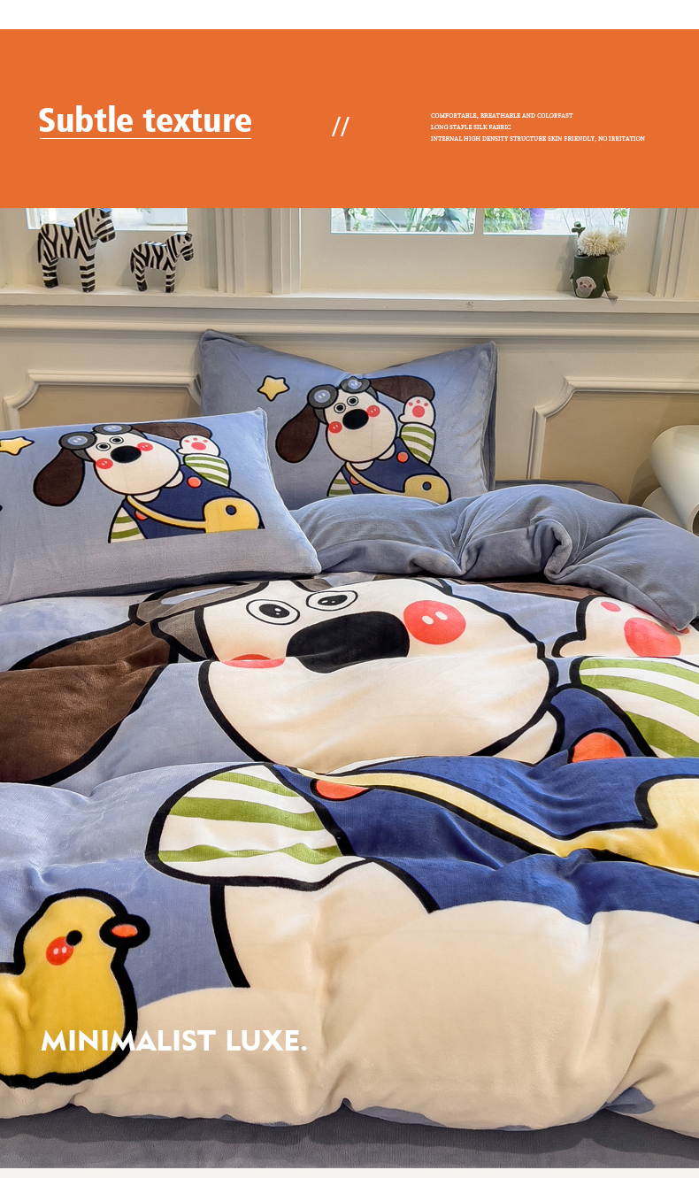 当前位置: 91家纺网 > 商品网购 > 床品套件 > 四件套 > 牛奶绒四件套 > 丝羽坊 2025新款A类大版牛奶绒印花四件套 洛米狗