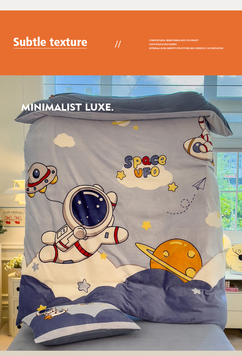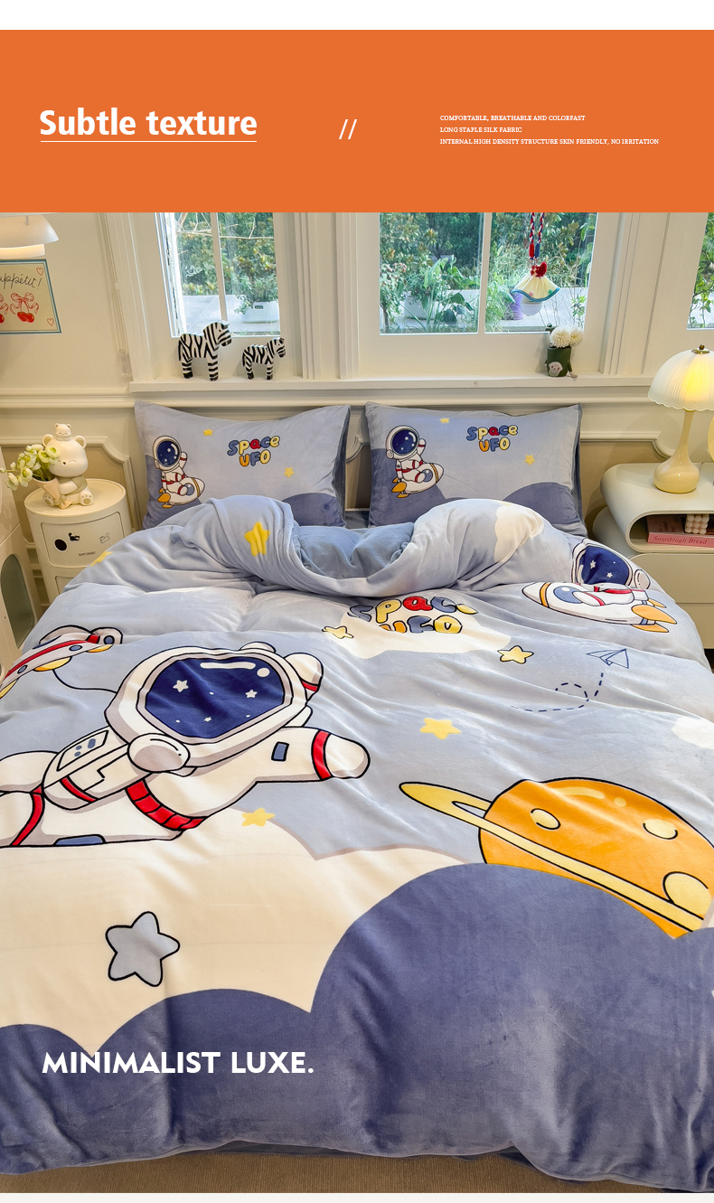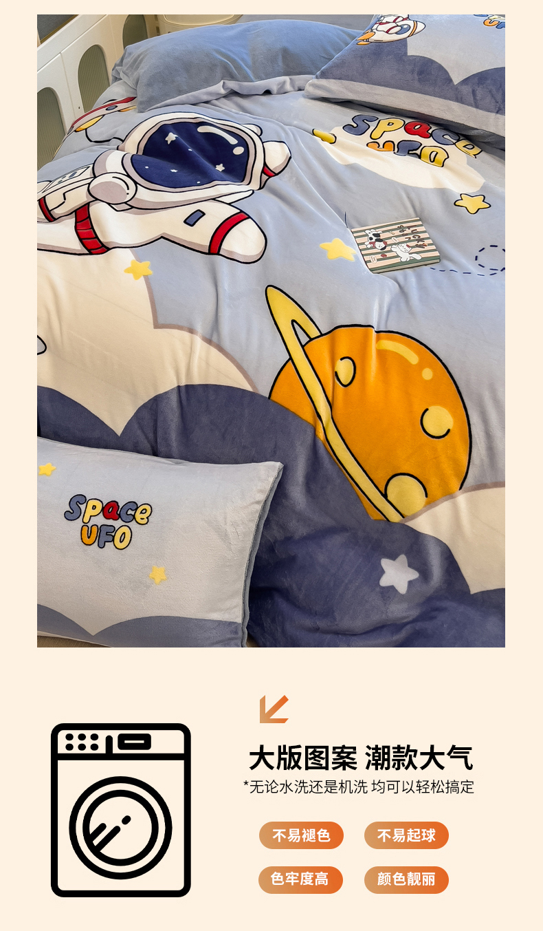 当前位置: 91家纺网 > 商品网购 > 床品套件 > 四件套 > 牛奶绒四件套 > 丝羽坊 2025新款A类大版牛奶绒印花四件套 快乐星球