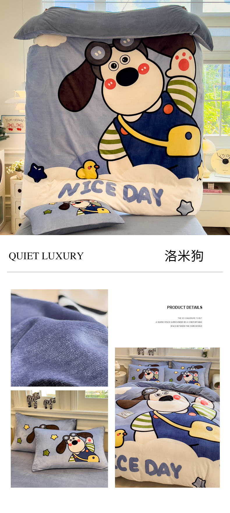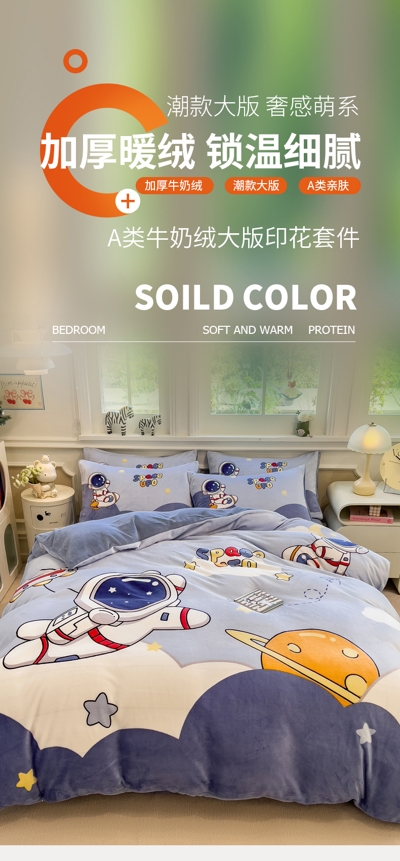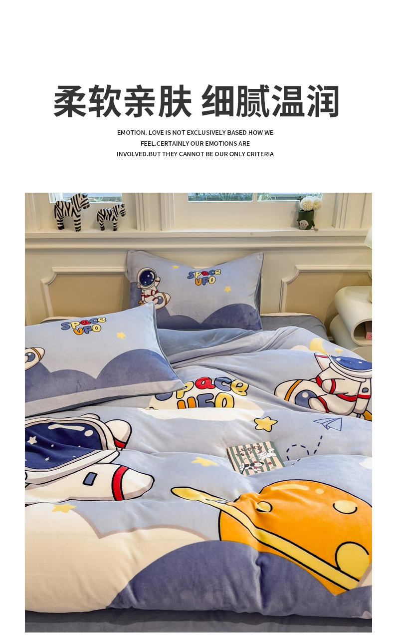 当前位置: 91家纺网 > 商品网购 > 床品套件 > 四件套 > 牛奶绒四件套 > 丝羽坊 2025新款A类大版牛奶绒印花四件套 快乐星球